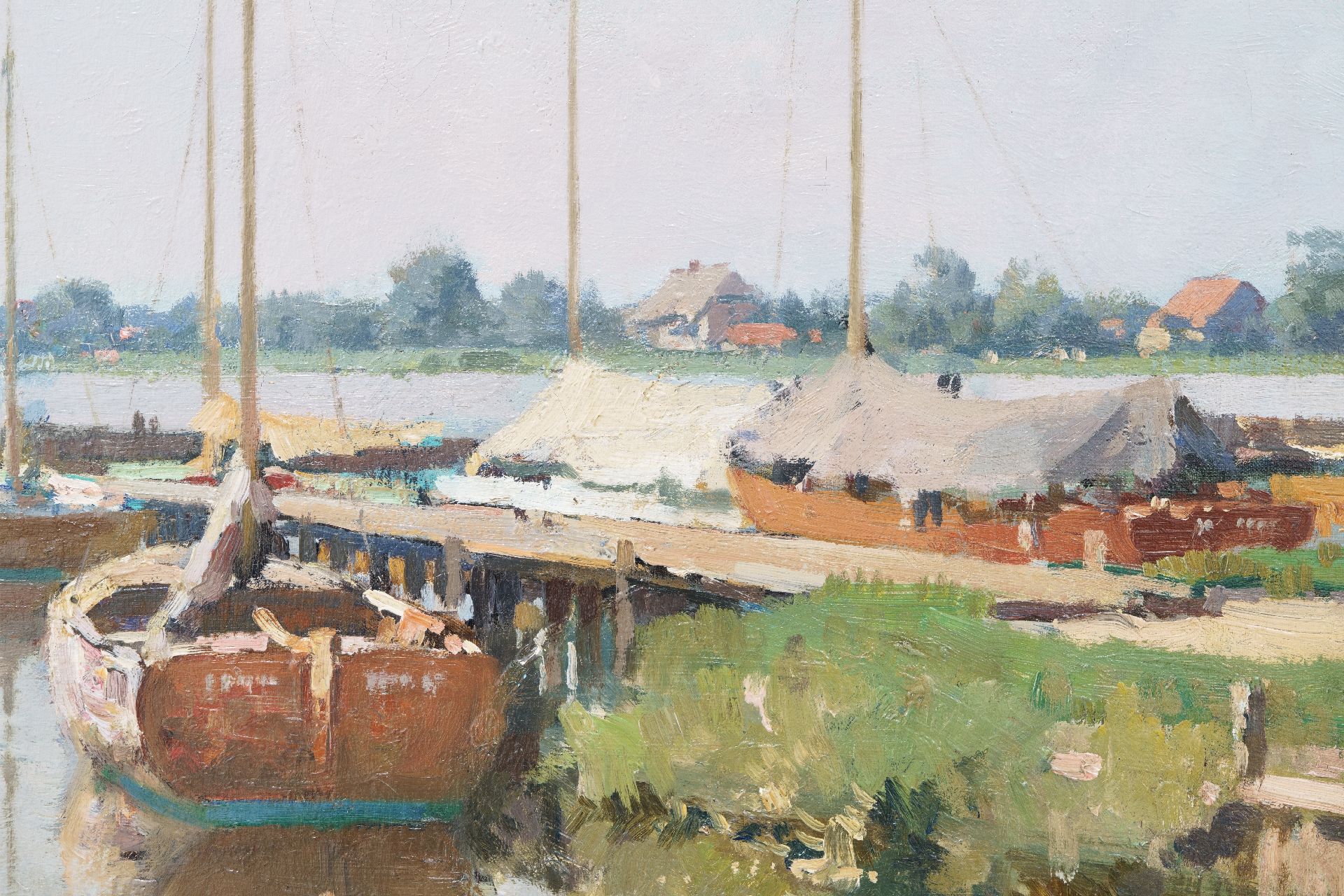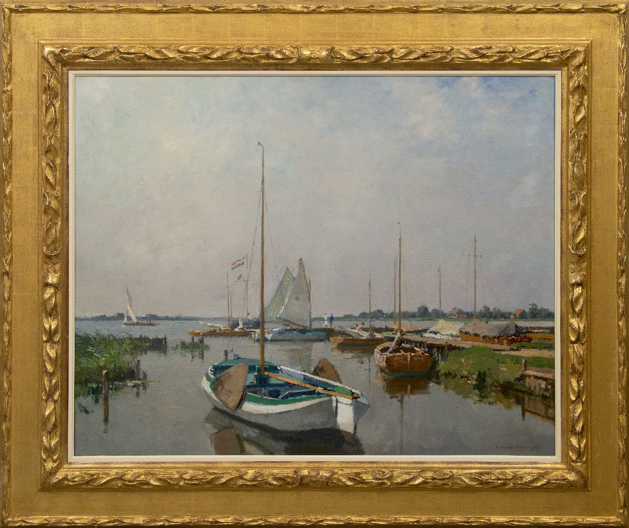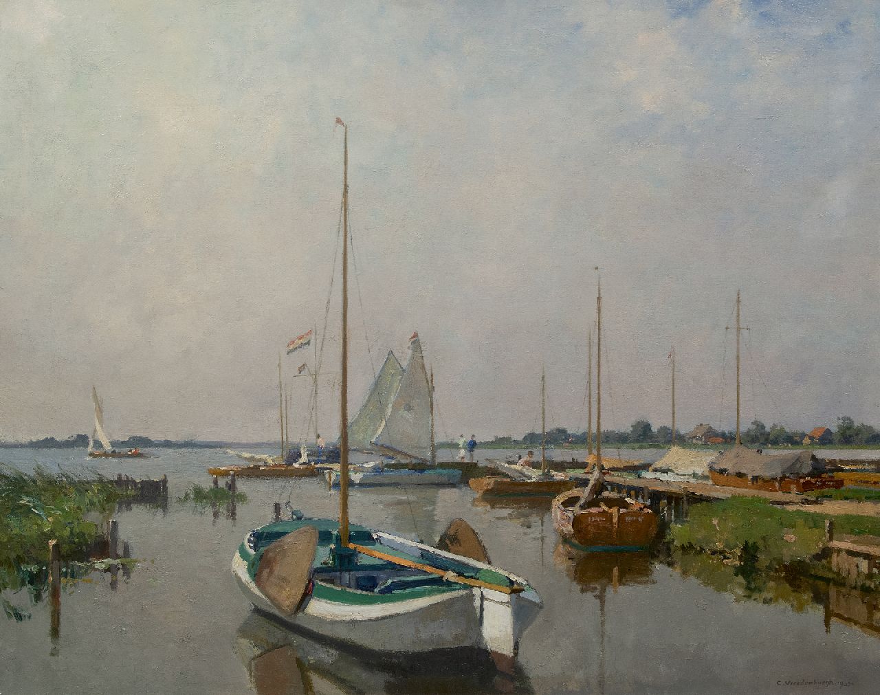 Cornelis Vreedenburgh kunstwerk • schilderij • te koop Haven aan de Loosdrechtse Plassen, op de voorgrond een tjotter