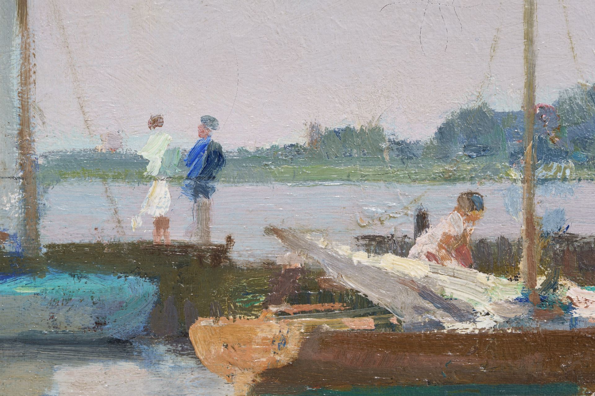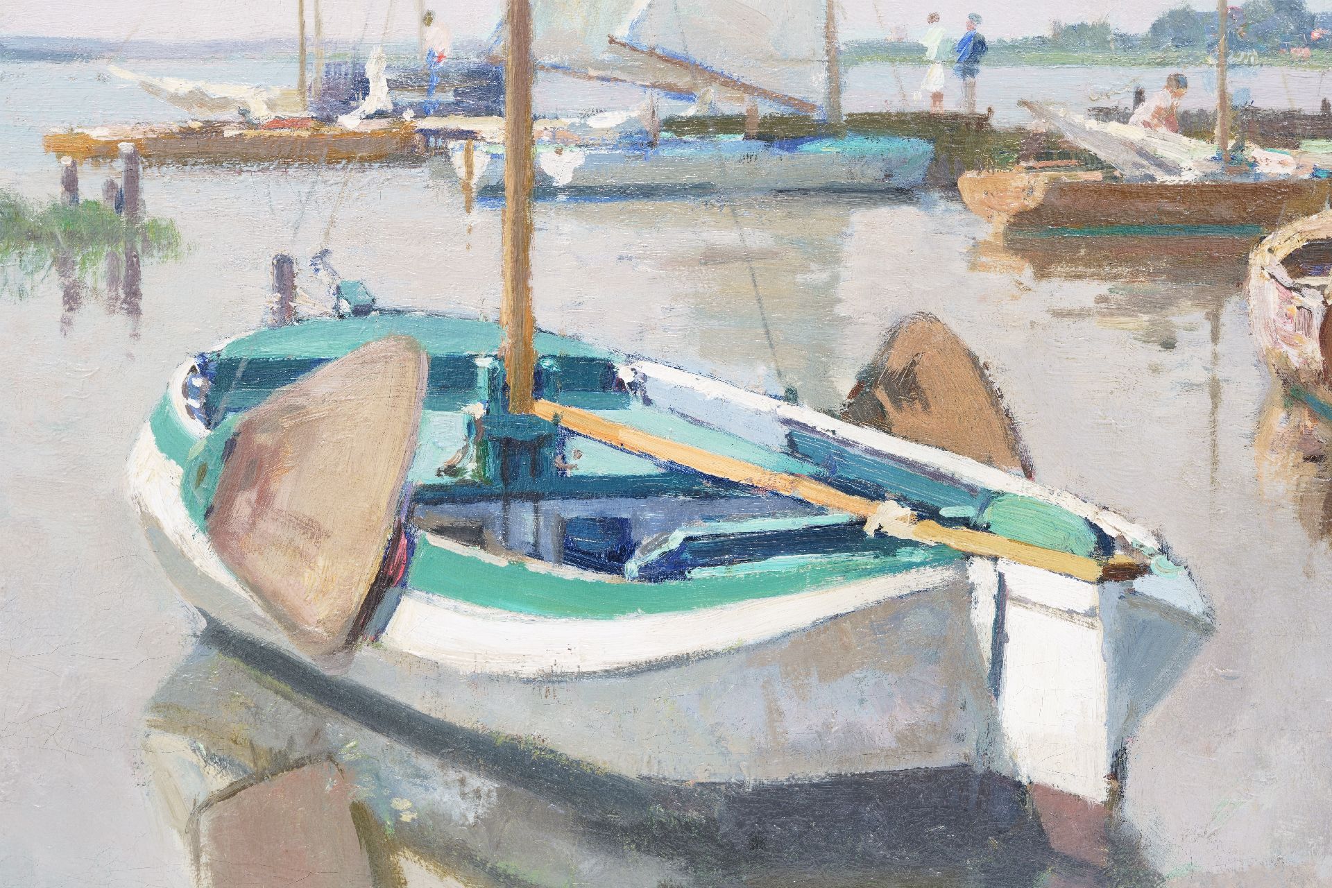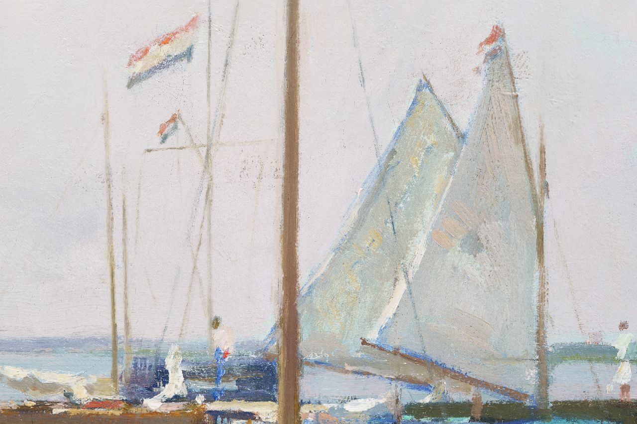 Cornelis Vreedenburgh kunstwerk • schilderij • te koop Haven aan de Loosdrechtse Plassen, op de voorgrond een tjotter