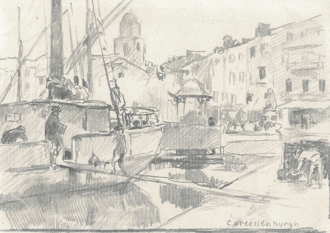 Cornelis Vreedenburgh kunstwerk • aquarel • tekening • voorheen te koop Havengezicht Zuid Frankrijk