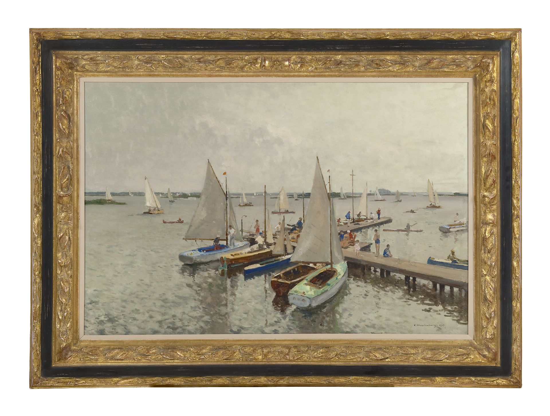 Cornelis Vreedenburgh kunstwerk • schilderij • voorheen te koop Jachthaven aan de Loosdrechtse Plassen