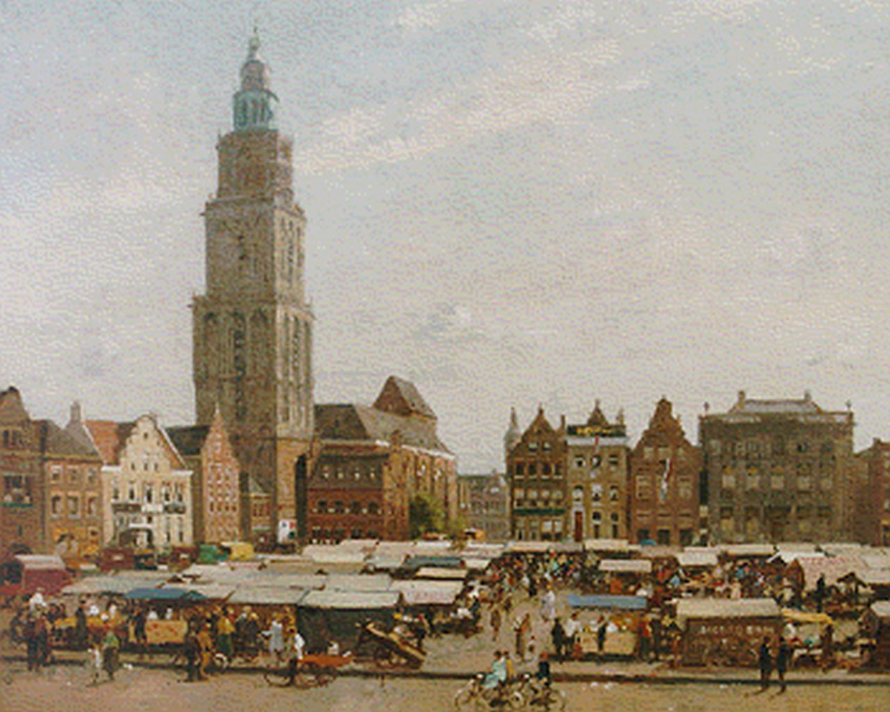 Cornelis Vreedenburgh kunstwerk • schilderij • voorheen te koop Marktdag te Groningen