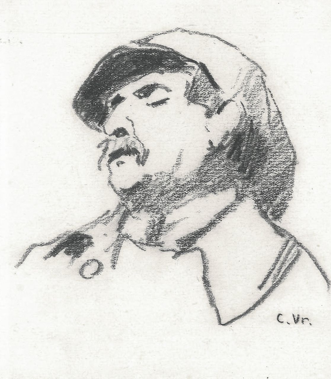 zwart krijt op papier 12,2 x 10,7 cm, gesigneerd rechtsonder met initialen