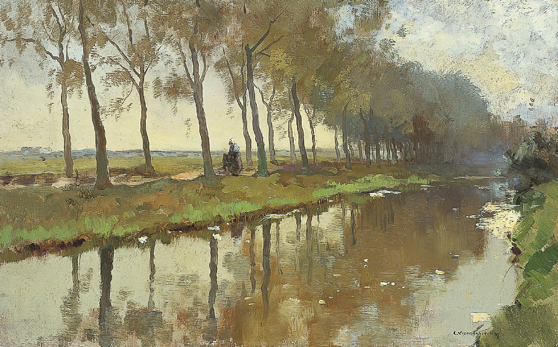Cornelis Vreedenburgh kunstwerk • schilderij • voorheen te koop Vroege ochtend langs de vaart