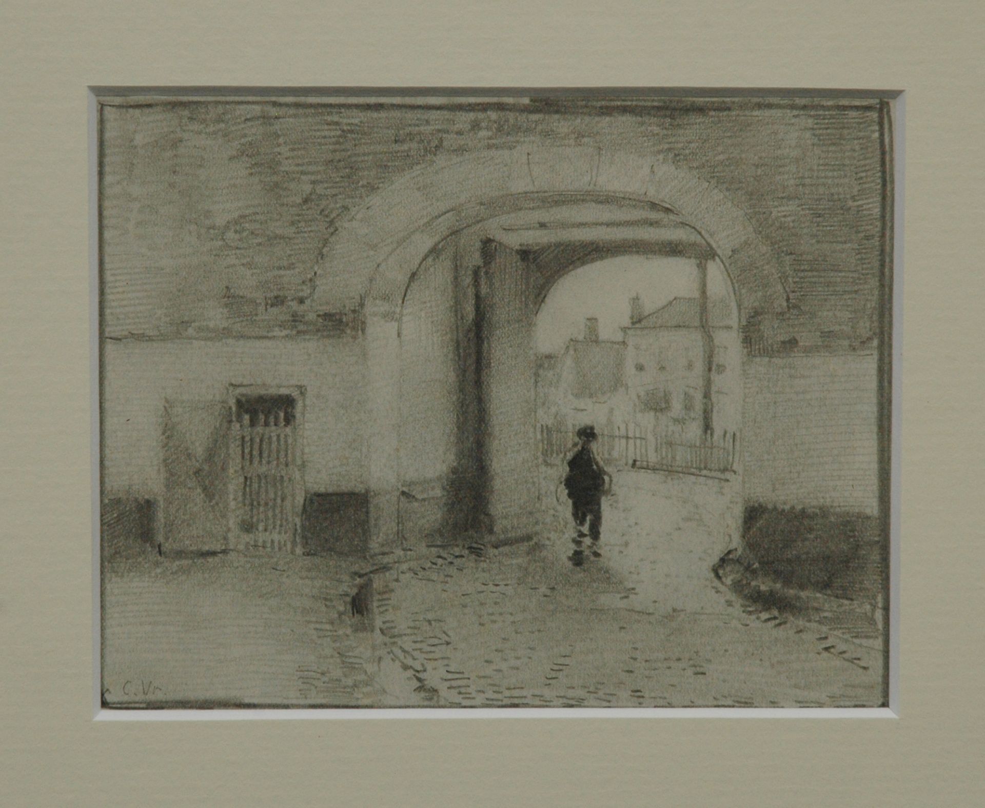 Cornelis Vreedenburgh kunstwerk • aquarel • tekening • voorheen te koop Wandelaar onder een stadspoort