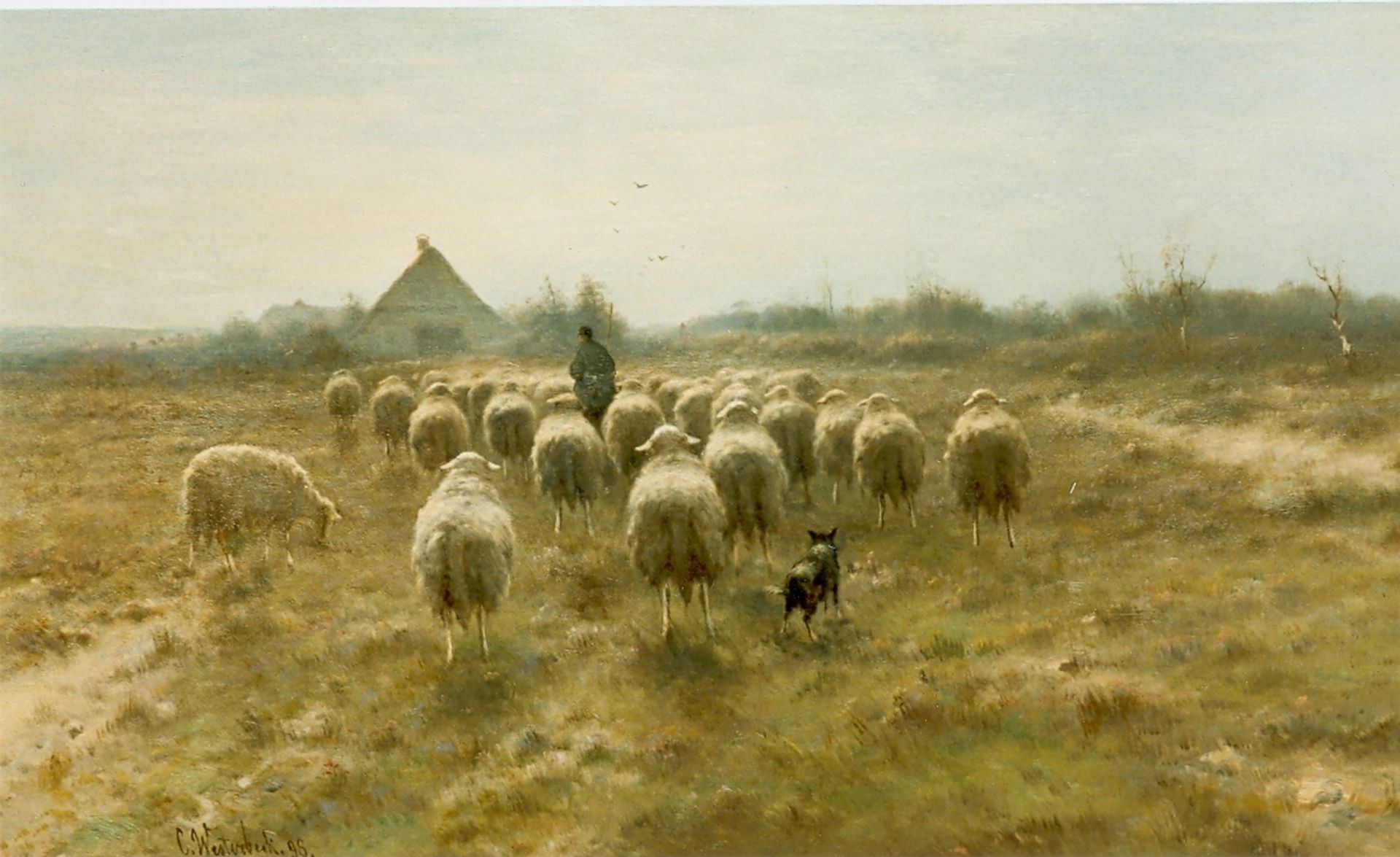 Cornelis Westerbeek kunstwerk • schilderij • voorheen te koop Op weg naar de schaapskooi