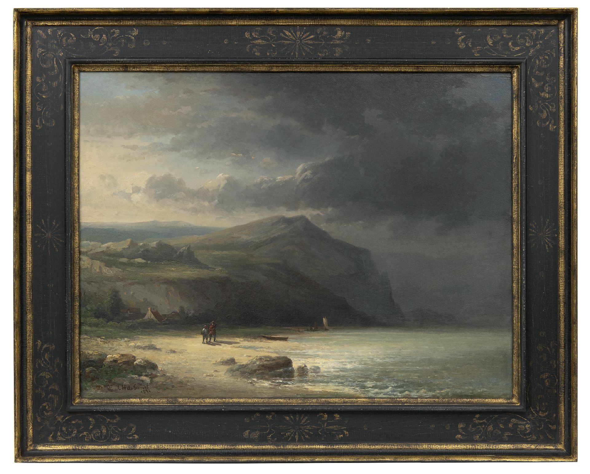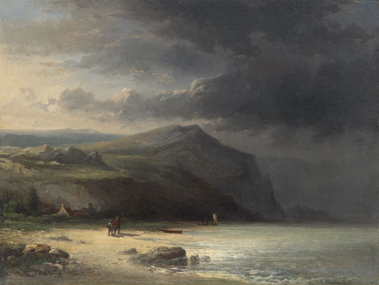 Corstiaan Hendrikus de Swart kunstwerk • schilderij • te koop Figuren op het strand bij naderend noodweer