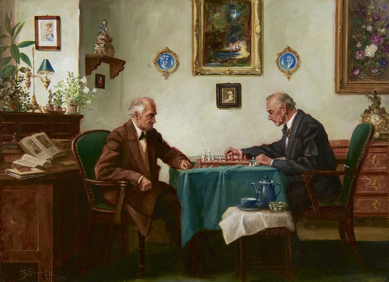 Curt Bruckner kunstwerk • schilderij • voorheen te koop De wekelijkse schaakpartij