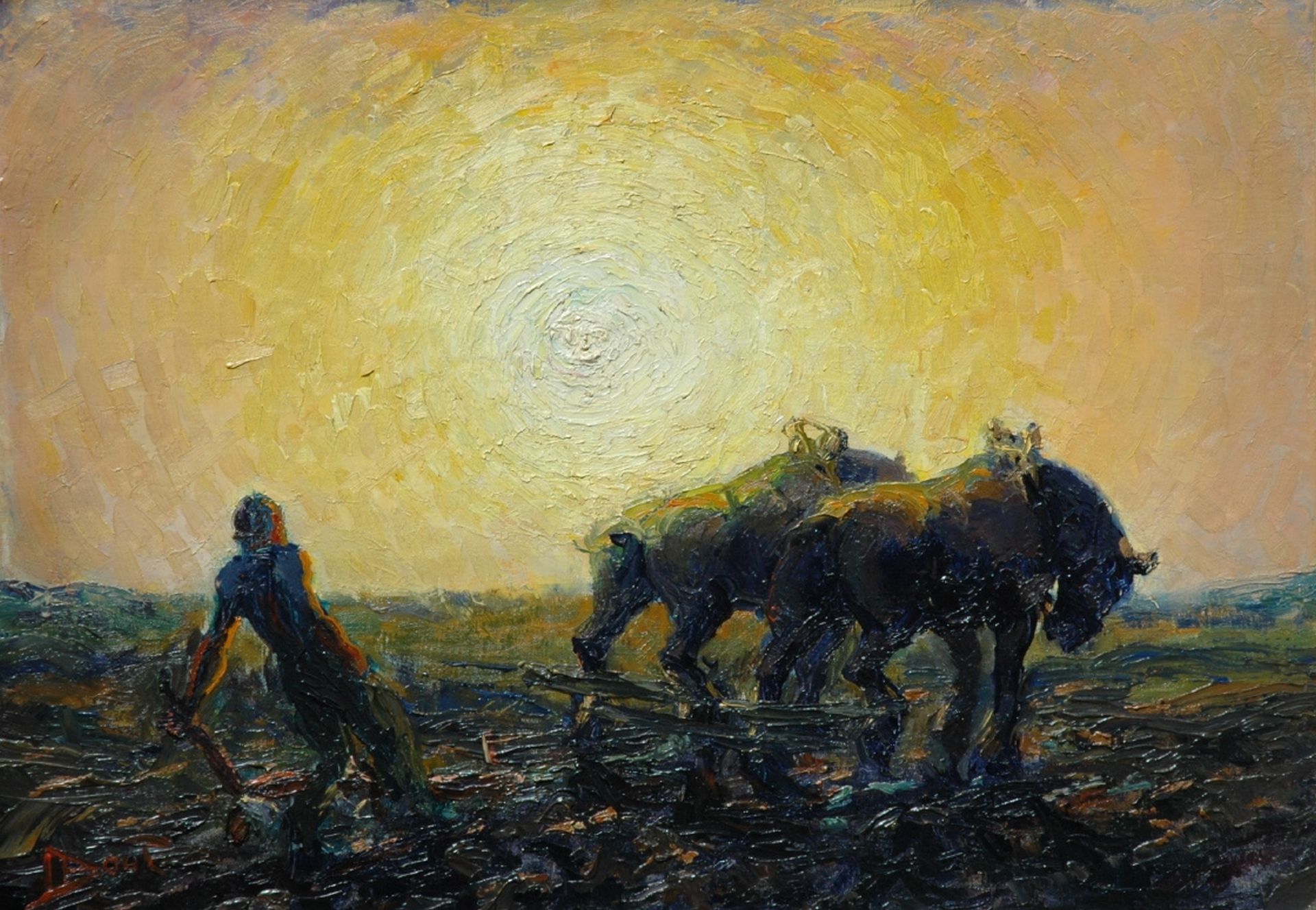 Daan Bout kunstwerk • schilderij • voorheen te koop Ploegende paarden