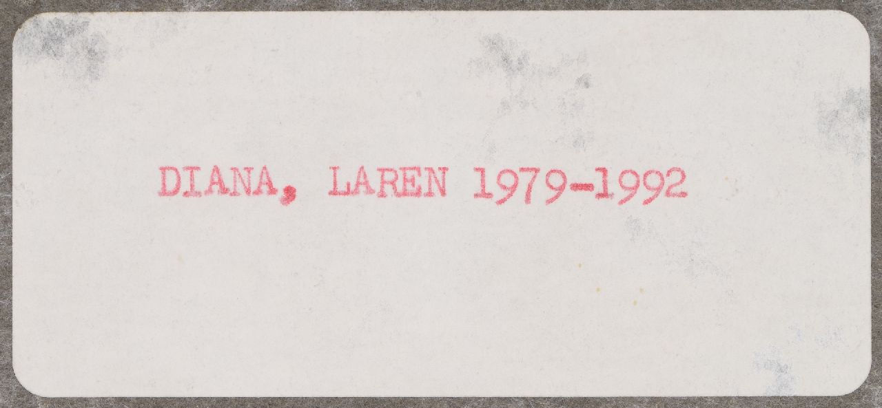 annotatie op etiket op achtertikkarton: 'Diana, Laren 1979-1992'