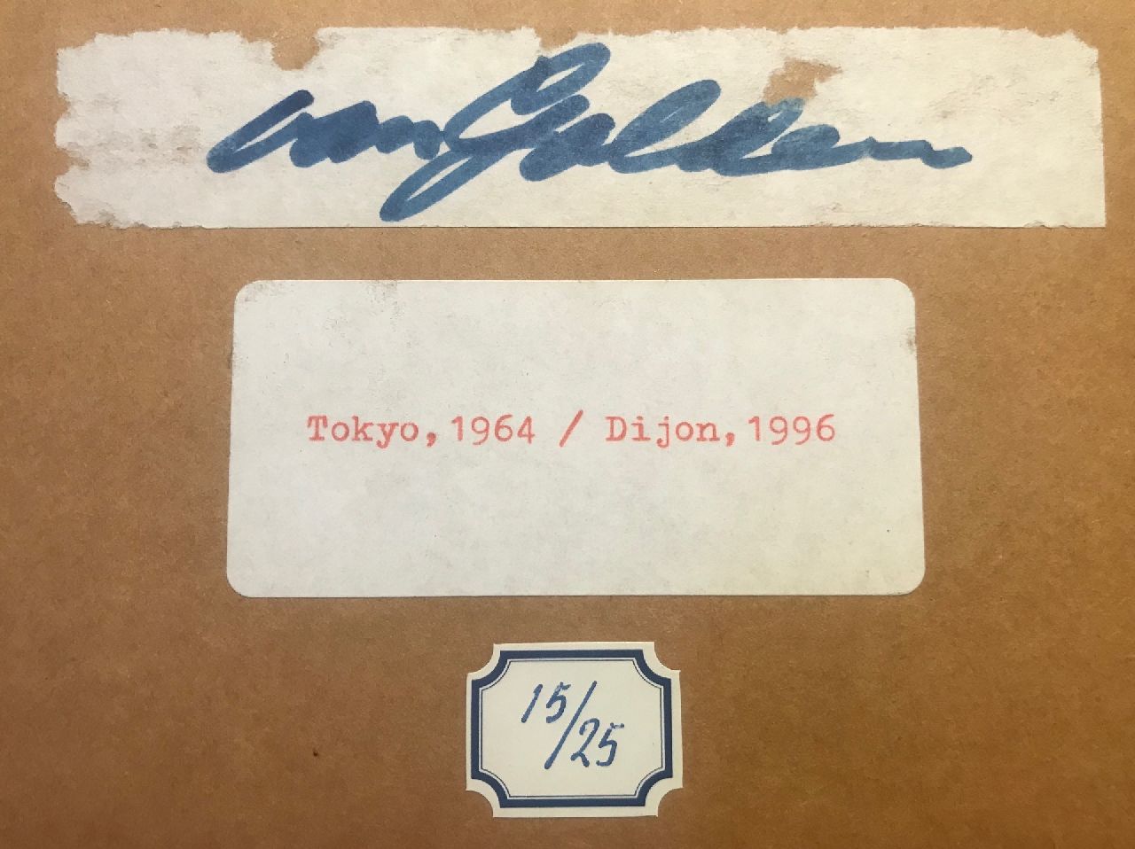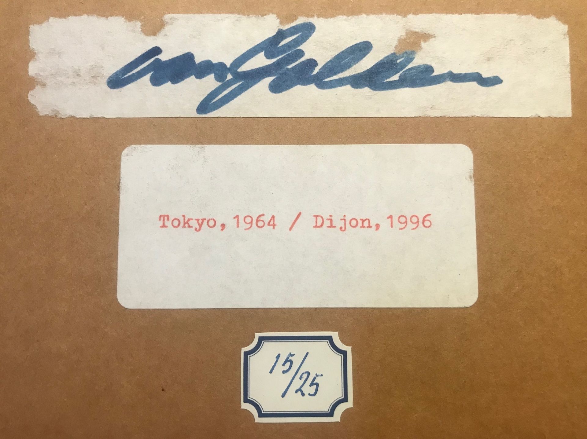annotatie op etiketten op steunkarton: 'Tokyo, 1964 / Dijon, 1996' en oplagenummer 15/25