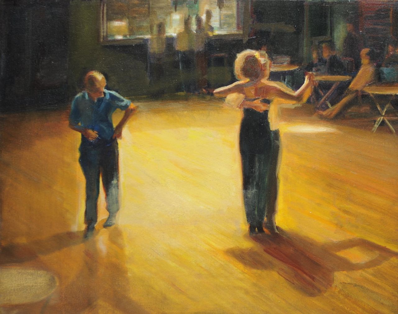 Daniel Kaplan, geboren en getogen in Buenos Aires, blijft in zijn tangoschilderijen dichtbij de traditie van zijn land. De Argentijnse tangomuziek- en dans ontstond rond 1880. In die tijd kwamen in de arme wijken van Buenos Aires de mensen op straat en in lokalen bijeen om met muziek en dans de ellende van de dag te vergeten. Deze plaatsen werden ‘milonga’s’ genoemd. Nog steeds wordt er in de talrijke milonga’s van de stad gedanst. Door te spelen met licht weet Kaplan goed de sfeer en emoties in deze plaatsen van samenkomst vast te leggen.