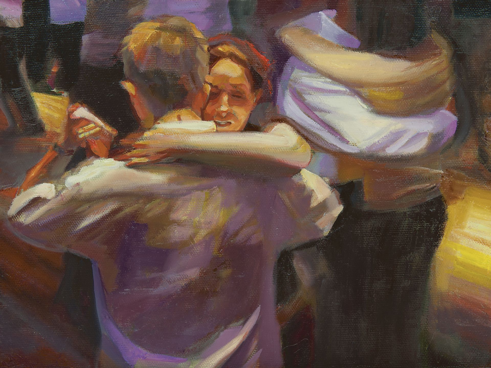 Daniel Kaplan, geboren en getogen in Buenos Aires, blijft in zijn tangoschilderijen dichtbij de traditie van zijn land. De Argentijnse tangomuziek- en dans ontstond rond 1880. In die tijd kwamen in de arme wijken van Buenos Aires de mensen op straat en in lokalen bijeen om met muziek en dans de ellende van de dag te vergeten. Deze plaatsen werden ‘milonga’s’ genoemd. Nog steeds wordt er in de talrijke milonga’s van de stad gedanst. Door te spelen met licht weet Kaplan goed de sfeer en emoties in deze plaatsen van samenkomst vast te leggen.