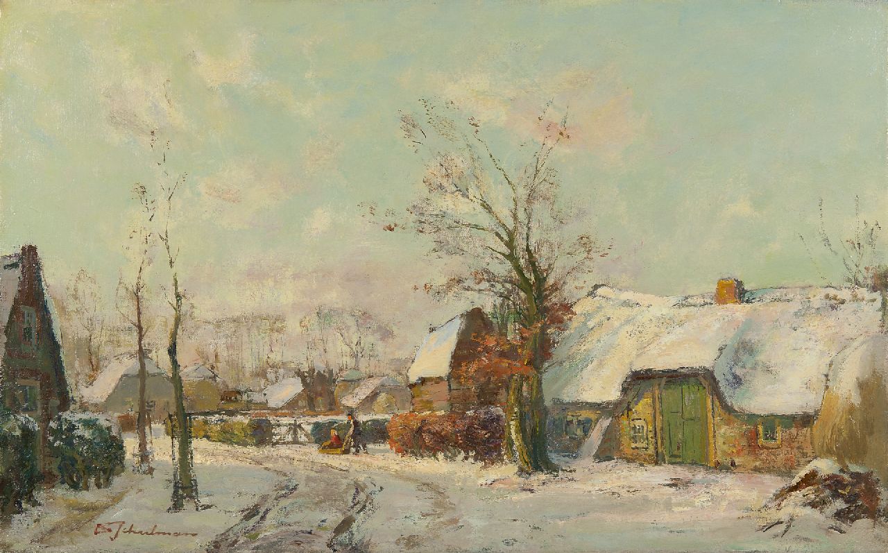 David Schulman kunstwerk • schilderij • te koop Boerenpaar in de sneeuw, Blaricum