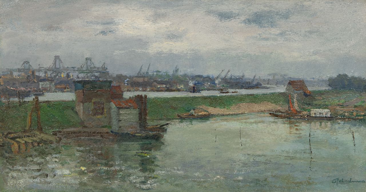 olieverf op doek 47,3 x 75,5 cm, gesigneerd linksonder