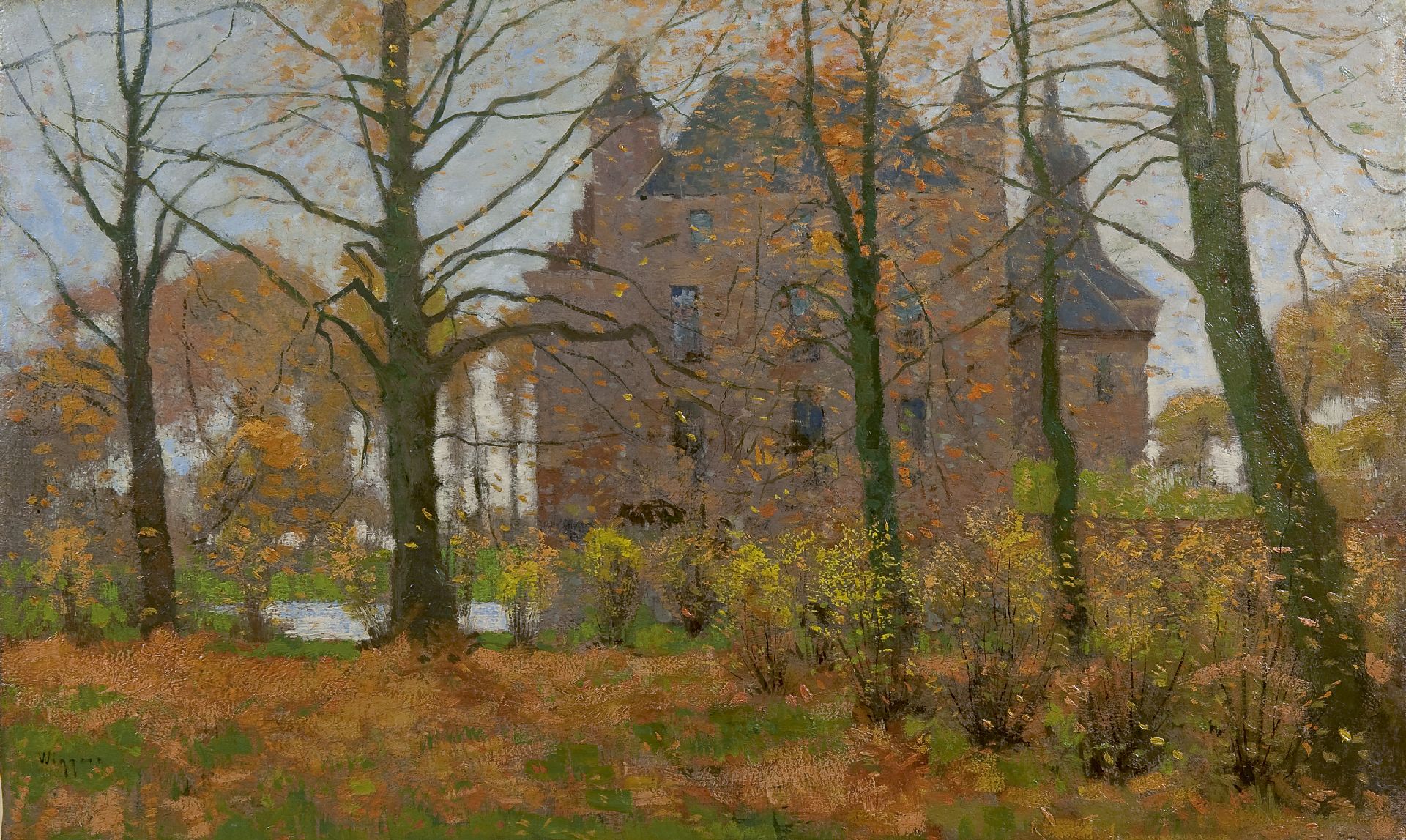 Derk Wiggers kunstwerk • schilderij • voorheen te koop Kasteel Doorwerth in de herfst