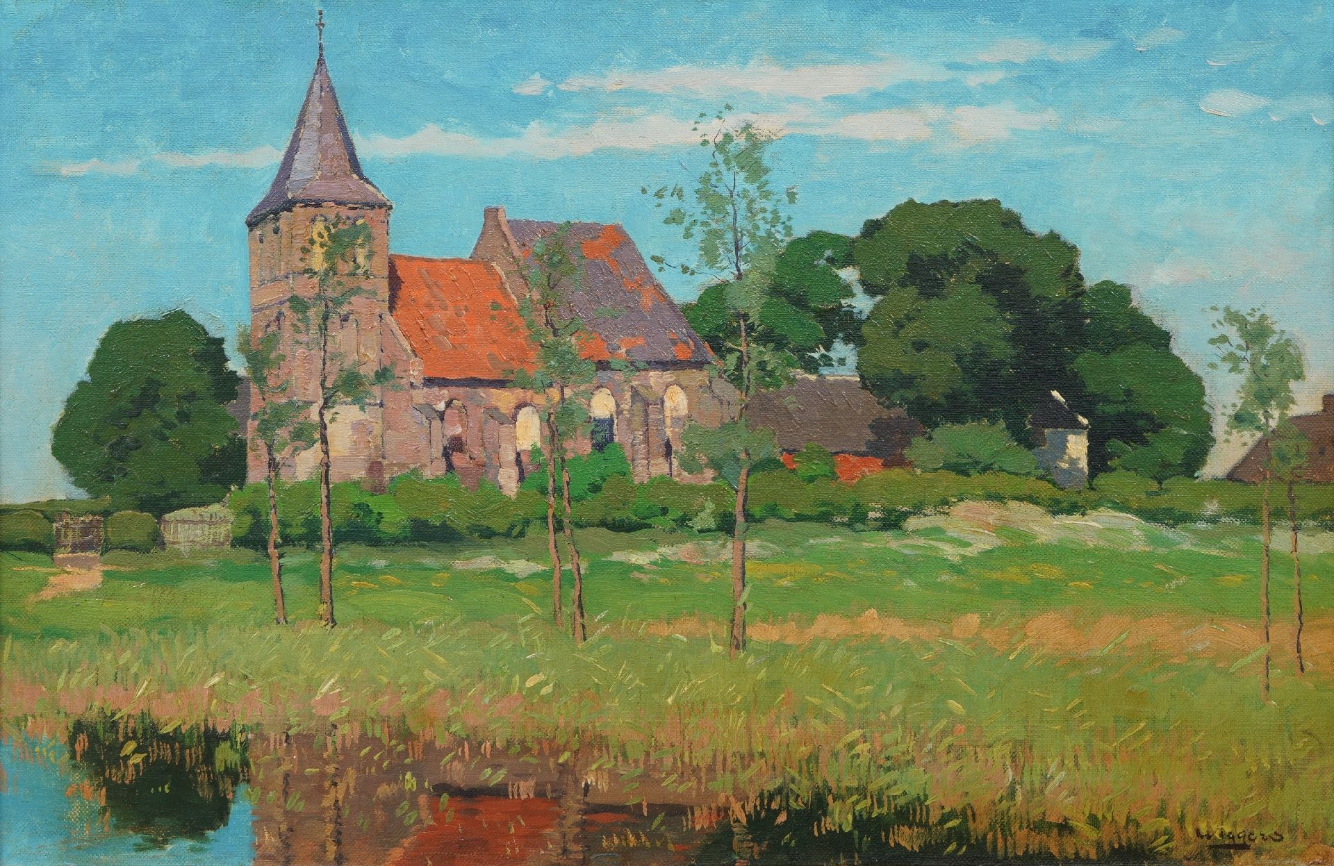 Derk Wiggers kunstwerk • schilderij • te koop Landschap met het kerkje van Persingen