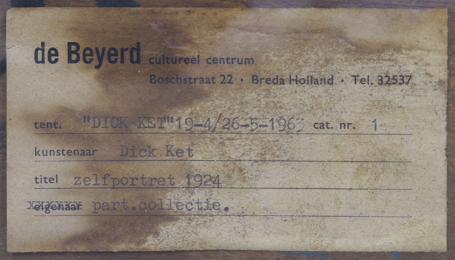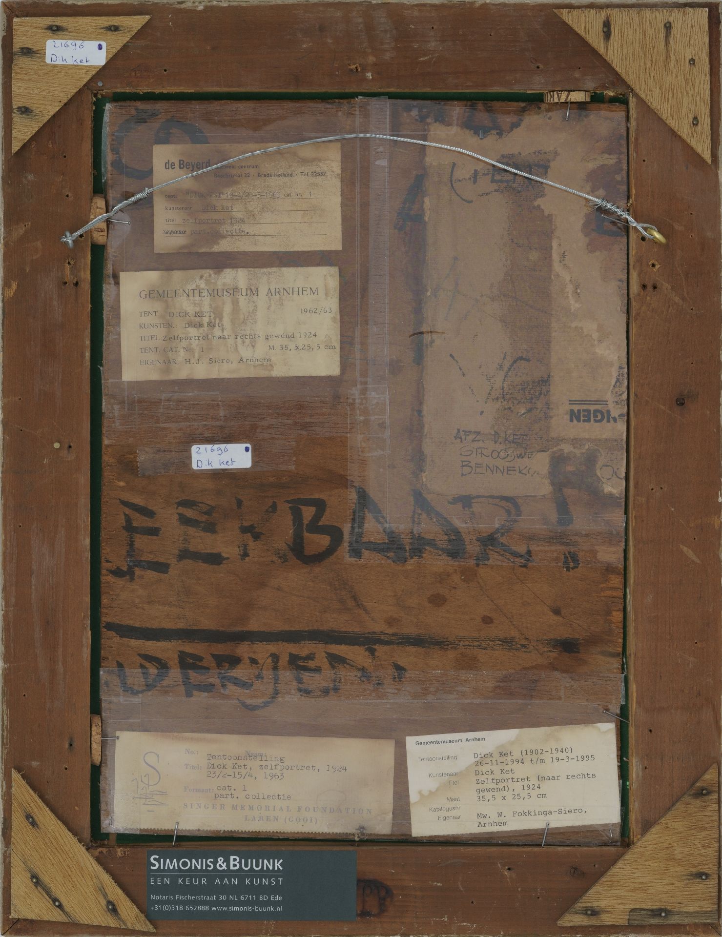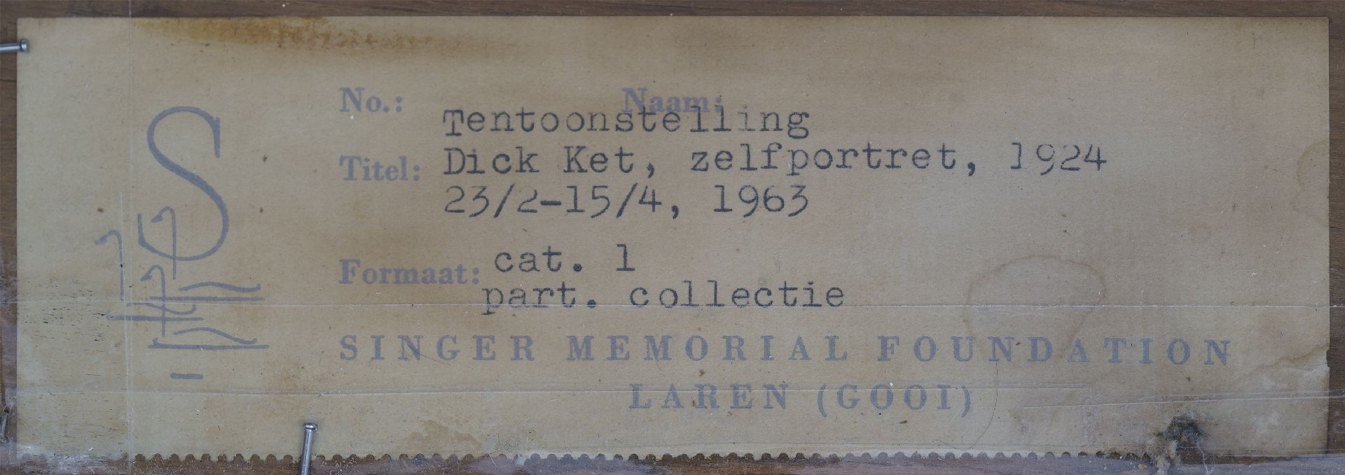 Dick Ket is vooral bekend geworden als schilder van minutieus geschilderde stillevens en portretten. Ze kwamen tot stand na 1930, toen de gevolgen van een hartkwaal hem dwongen zich terug te trekken in zijn atelier. Vóór die tijd, vanaf 1919, was hij een uitbundig schilder, die zijn indrukken spontaan in snelle toetsen op het doek zette. Hij maakte vooral landschappen en stadsgezichten en schilderde veel buiten. Mogelijk omdat hij niet altijd een geschikt onderwerp bij de hand had heeft Dick Ket relatief veel zelfportretten geschilderd. Hij is daarbij niet mild voor zichzelf. Vooral uit de periode 1924-1930 zijn een aantal zeer expressieve zelfportretten van hem bekend.
