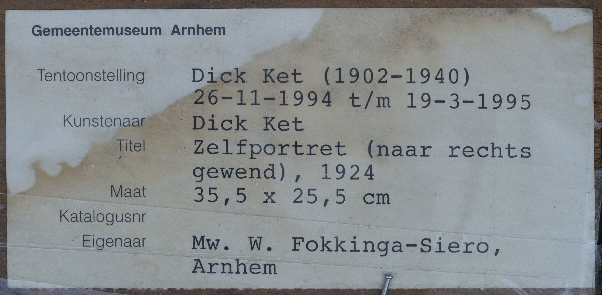 Dick Ket kunstwerk • schilderij • voorheen te koop Zelfportret, naar rechts gewend
