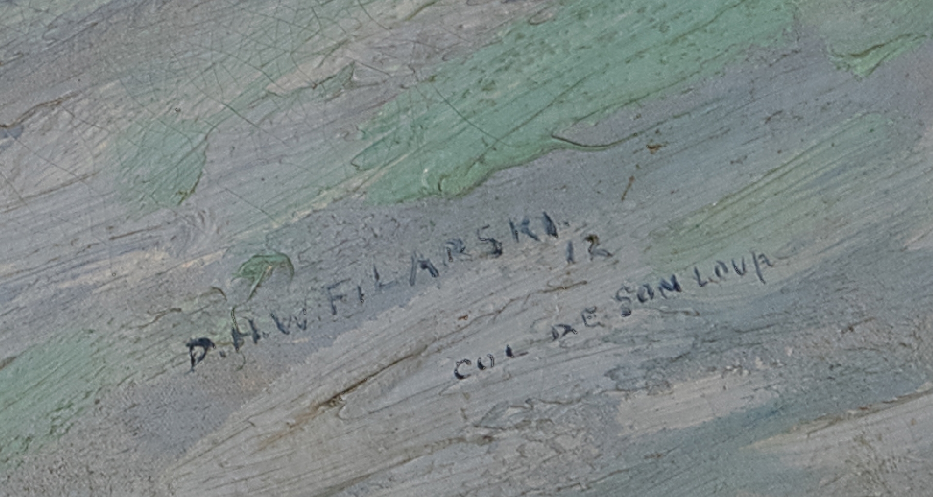 Dirk Filarski wordt samen met Arnout Colnot beschouwd als een van de grondleggers van de Bergense School. Hij schilderde vooral landschappen, die hij maakte tijdens zijn vele reizen door Europa en Noord-Afrika. In Nederland boeide hem vooral het landschap rond Bergen en Giethoorn. Filarski gebruikte daarvoor aanvankelijk lichte kleuren, na 1910 veranderde zijn palet in bruinen en groenen en werd zijn werk krachtig en expressionistisch. Ook schilderde hij stillevens en bloemen, groot opgezet in grijstinten en fel contrasterende kleuren.