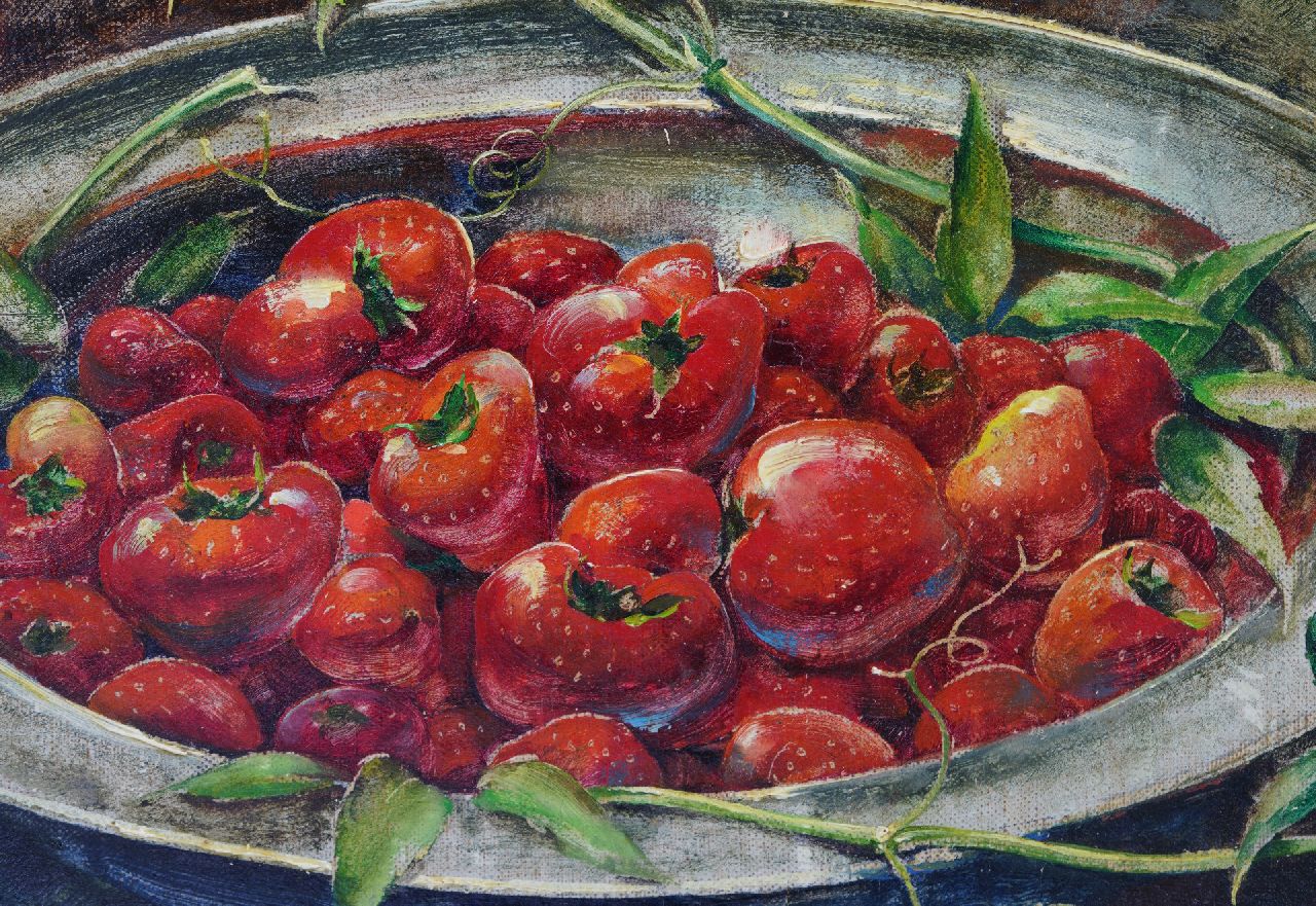 Dirk Kruizinga kunstwerk • schilderij • te koop Stilleven met aardbeien op tinnen schaal