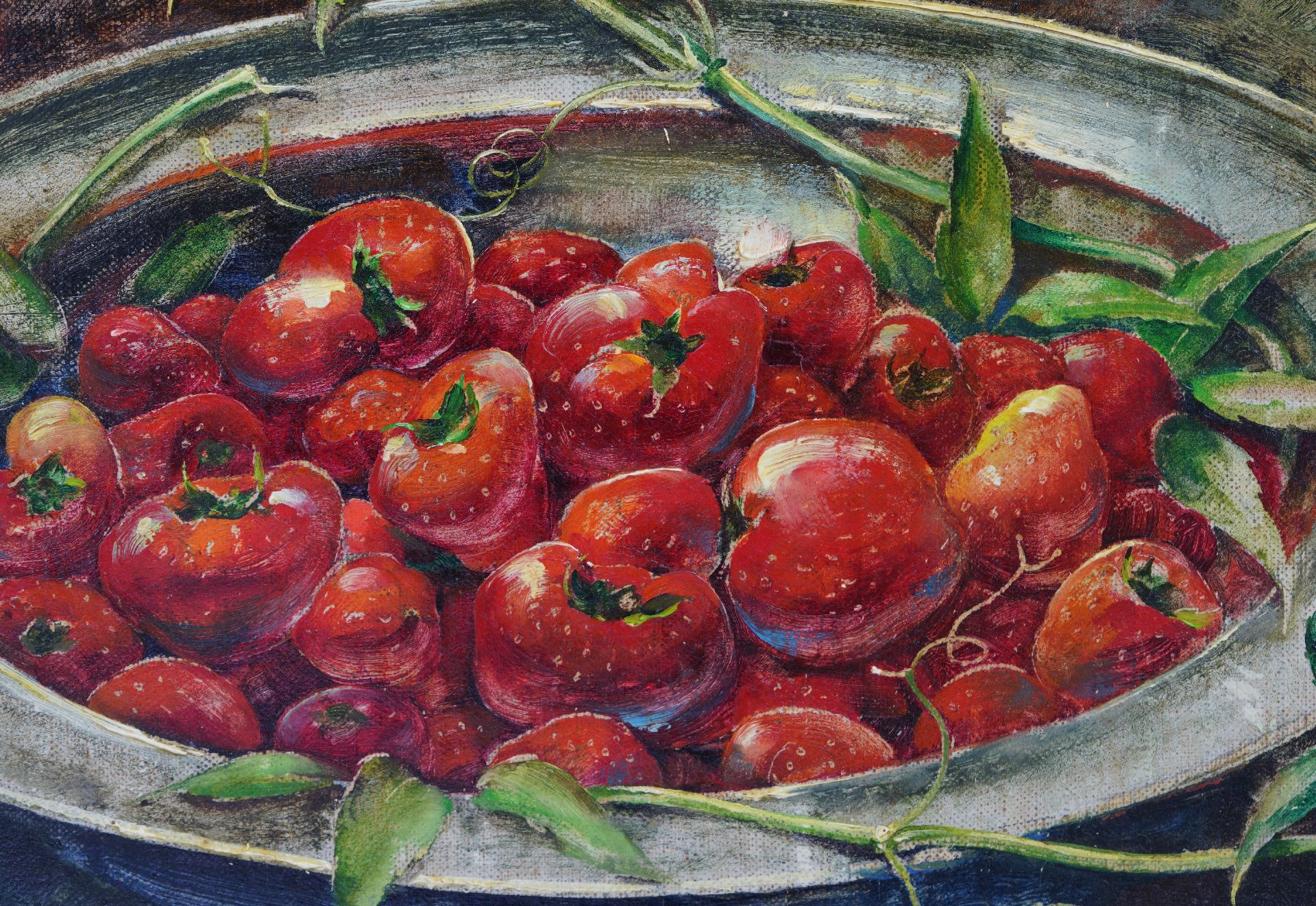 Dirk Kruizinga kunstwerk • schilderij • te koop Stilleven met aardbeien op tinnen schaal