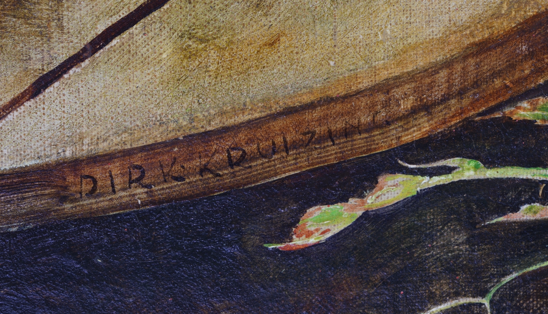 Dirk Kruizinga werd even bekend met zijn tekeningen en aquarellen als met zijn schilderijen. Aquarellen maakte hij tijdens reizen in Frankrijk en Italië, vooral landschappen, stadsgezichten en stillevens. Zij verschillen van zijn olieverfschilderijen die soms uitgesproken anekdotisch zijn en wat stijl betreft verwantschap vertonen met oude Vlaamse schilderkunst, zoals die van Pieter Breughel en zijn omgeving. Kruizinga schilderde de werkelijkheid niet na, maar componeerde deze met zijn eigen fantasie, realistische en verzonnen details combinerend. Zijn palet is ingehouden, sober. In zijn woonplaats Amsterdam behoorde hij tot de oprichters van De Brug waarin realistische schilders waren verenigd.