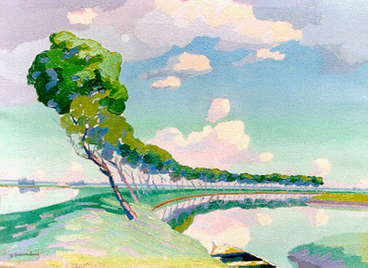 Dirk Smorenberg kunstwerk • schilderij • voorheen te koop Gebogen populieren in polderlandschap