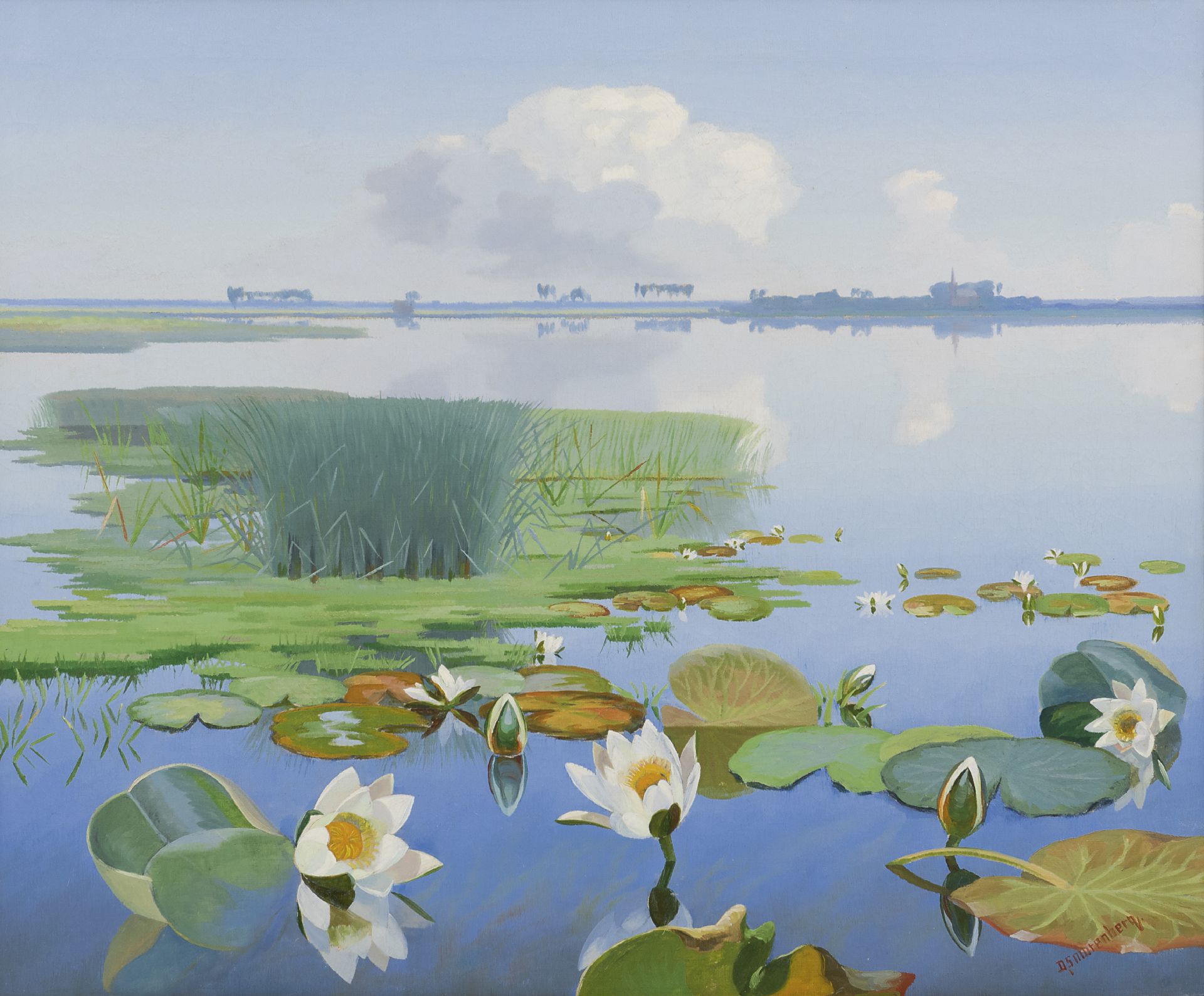 Dirk Smorenberg kunstwerk • schilderij • voorheen te koop Waterlelies in de Loosdrechtse Plassen