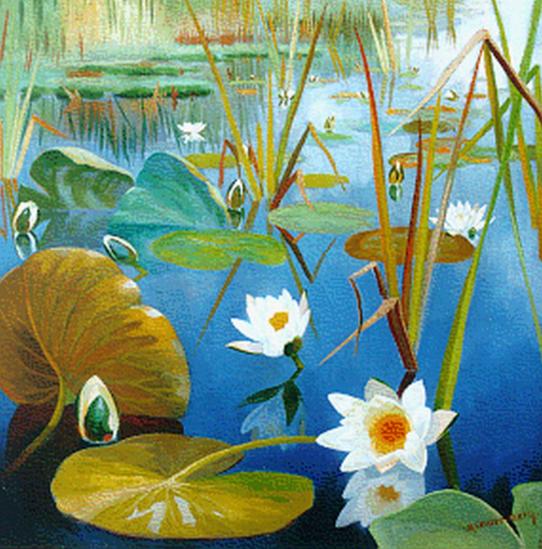 Dirk Smorenberg kunstwerk • schilderij • voorheen te koop Waterlelies