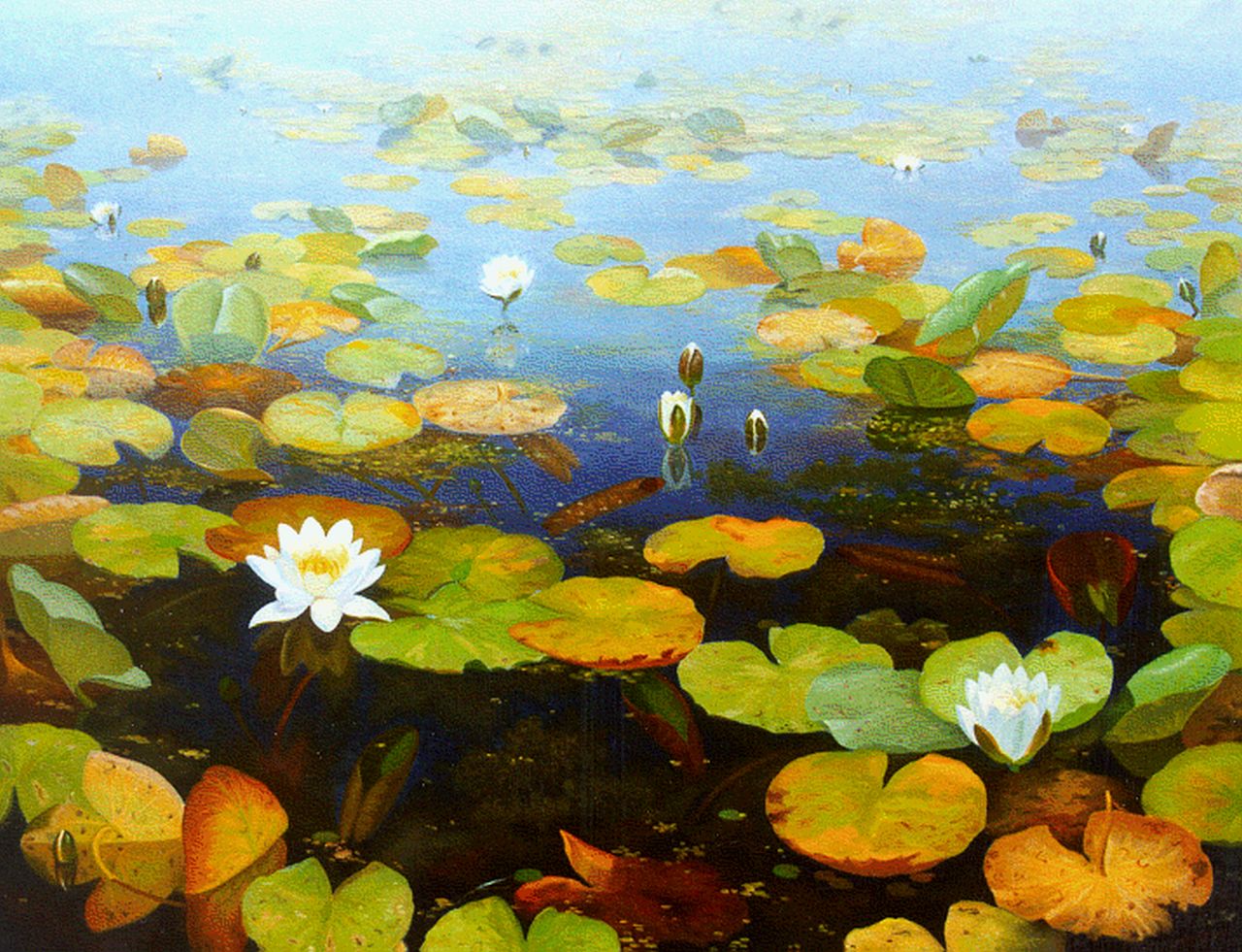 Dirk Smorenberg kunstwerk • schilderij • voorheen te koop Waterlelies