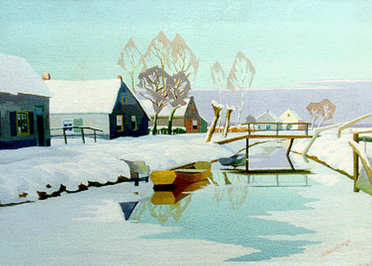 Dirk Smorenberg kunstwerk • schilderij • voorheen te koop Winters gezicht op Kortenhoef