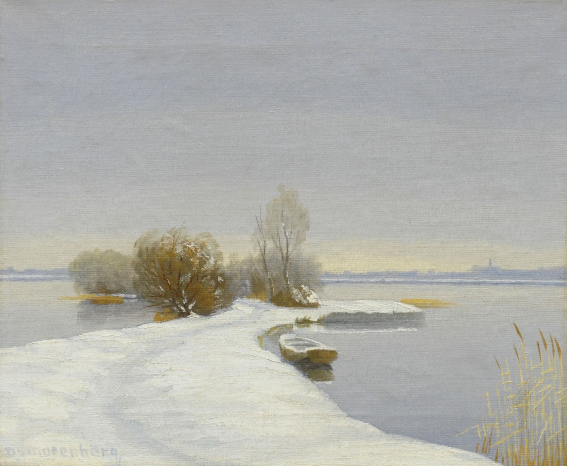 Dirk Smorenberg kunstwerk • schilderij • voorheen te koop Winters plasgezicht bij Loosdrecht