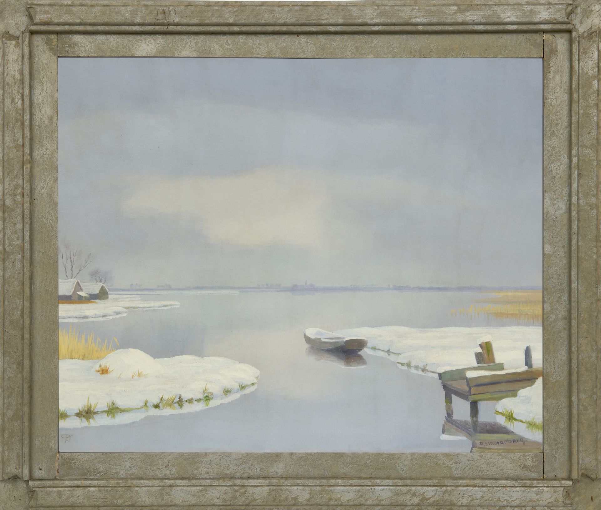 Dirk Smorenberg kunstwerk • schilderij • te koop Winters plassengezicht bij Loosdrecht