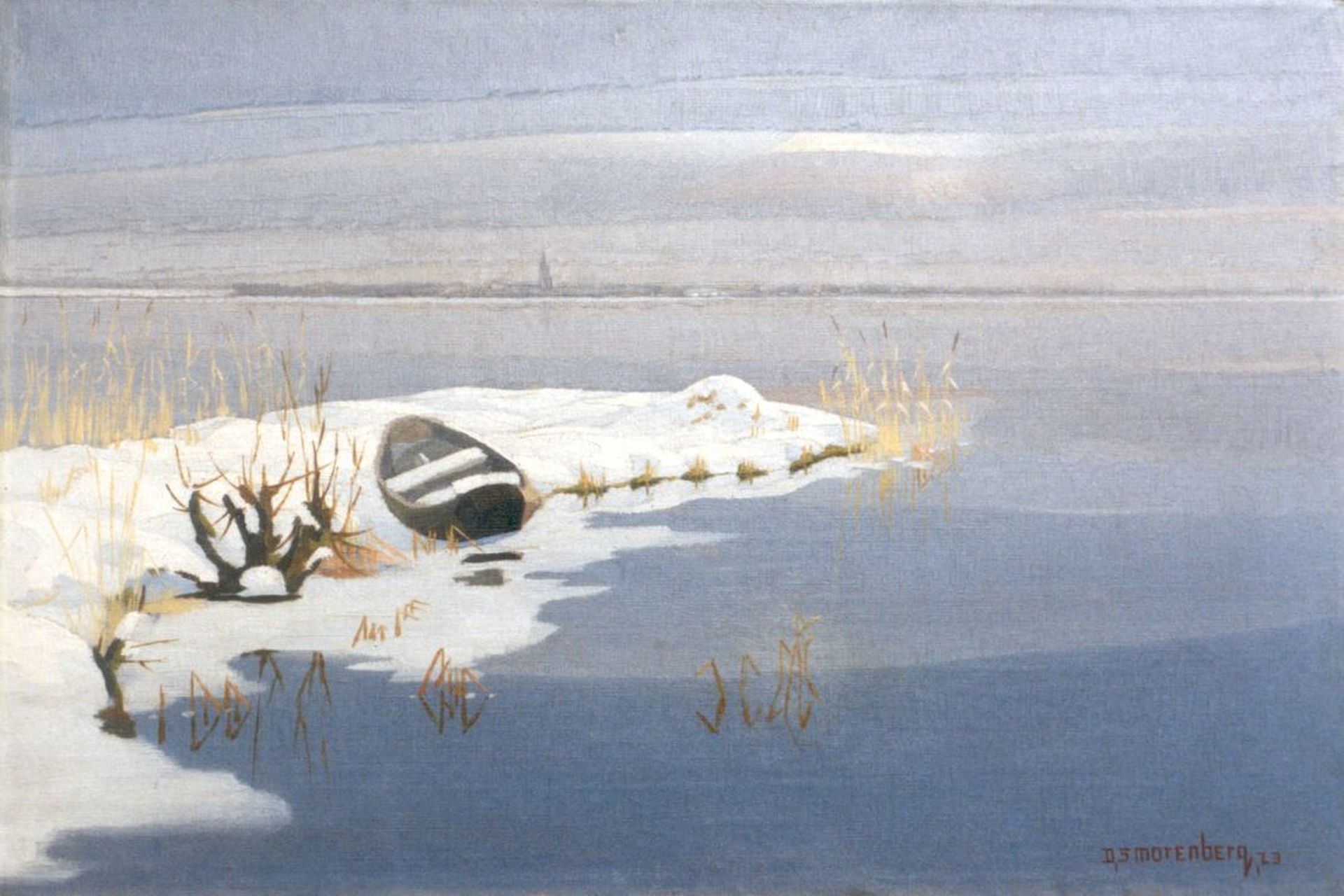Dirk Smorenberg kunstwerk • schilderij • voorheen te koop Winters plassengezicht bij Loosdrecht