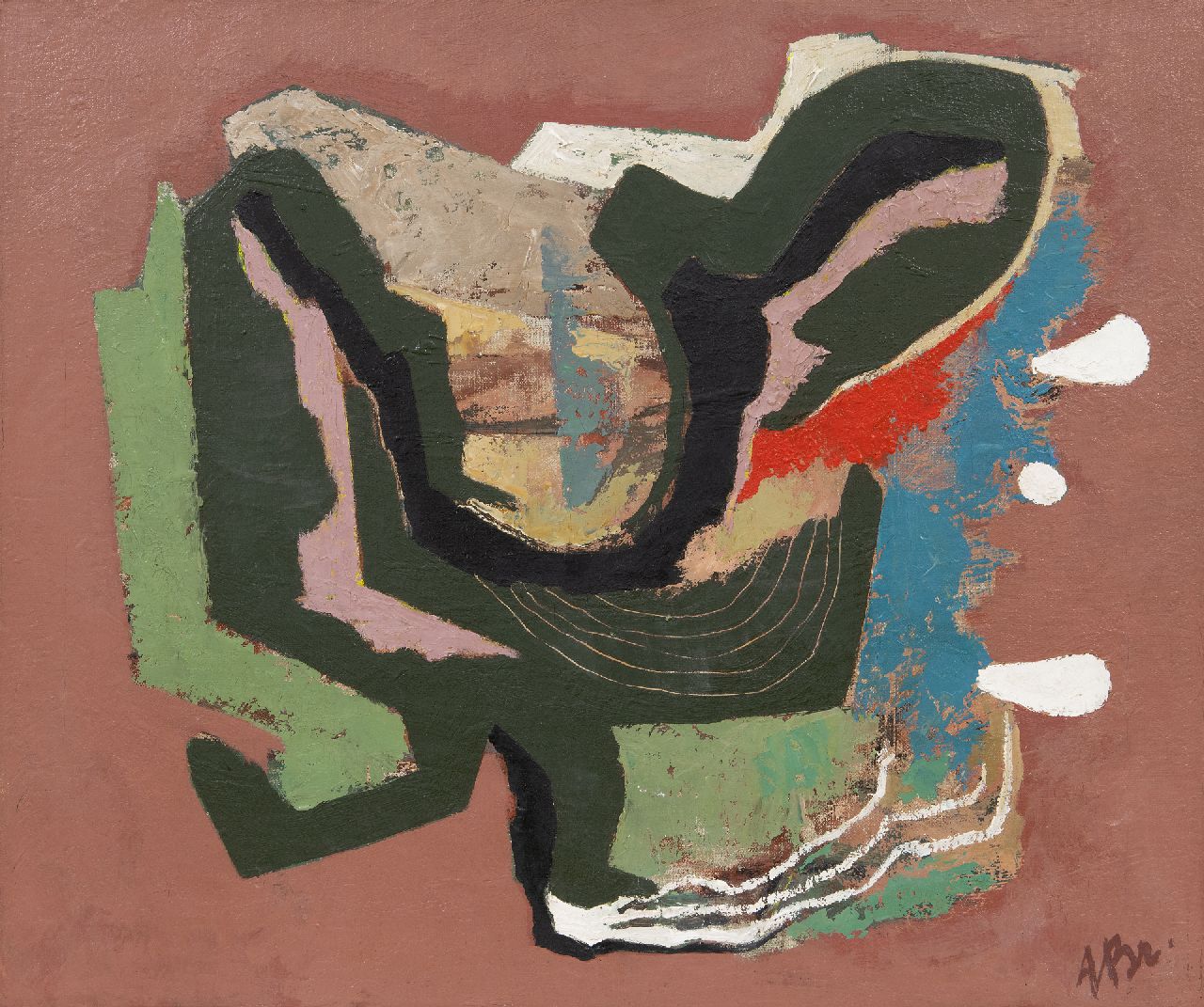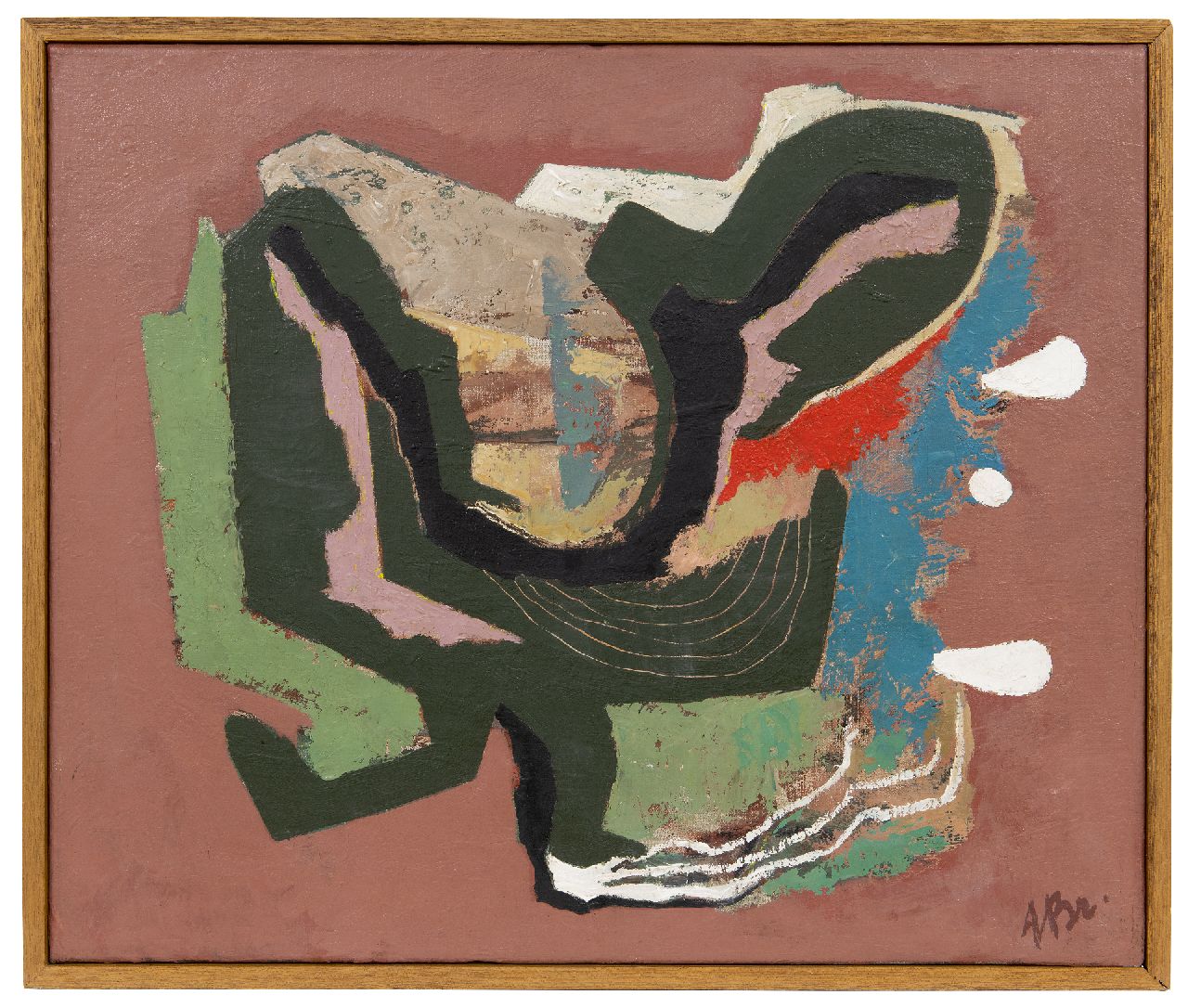 olieverf op doek 50,3 x 60,3 cm, gesigneerd rechtsonder en op spieraam en te dateren eind jaren 40