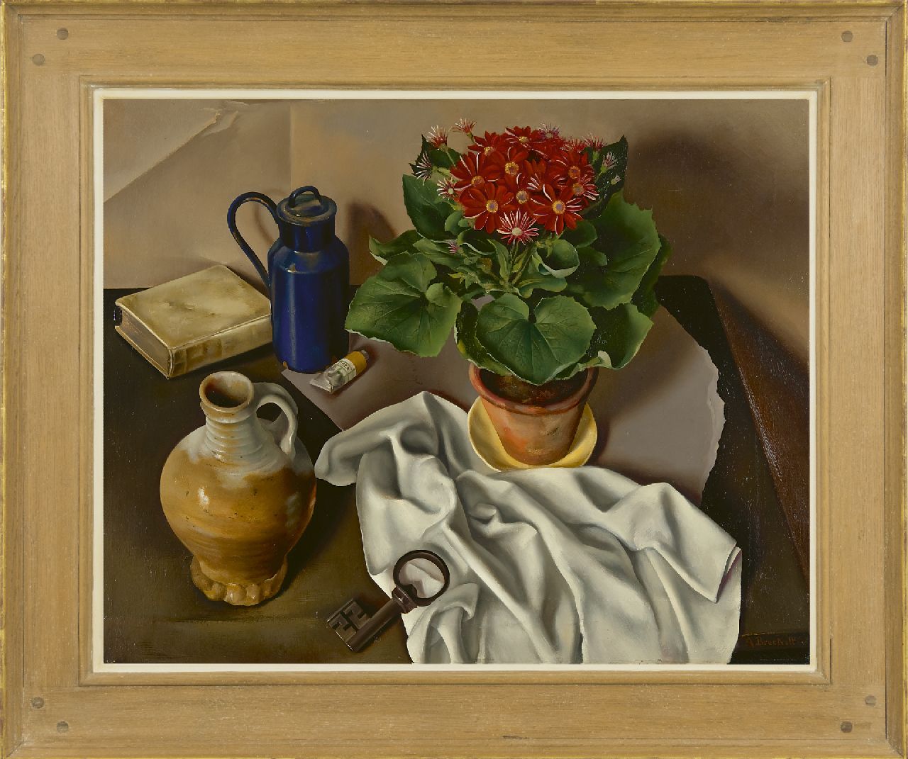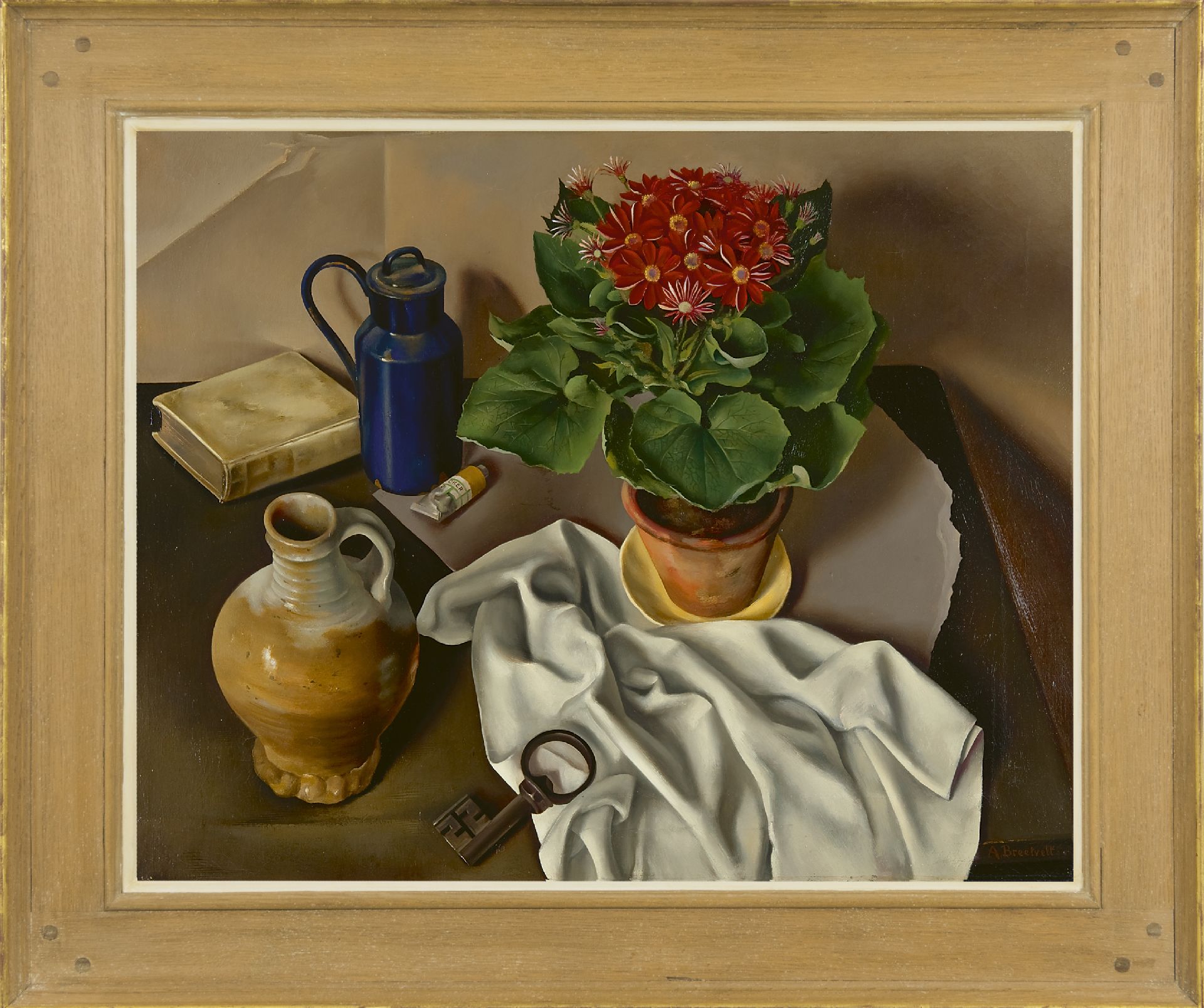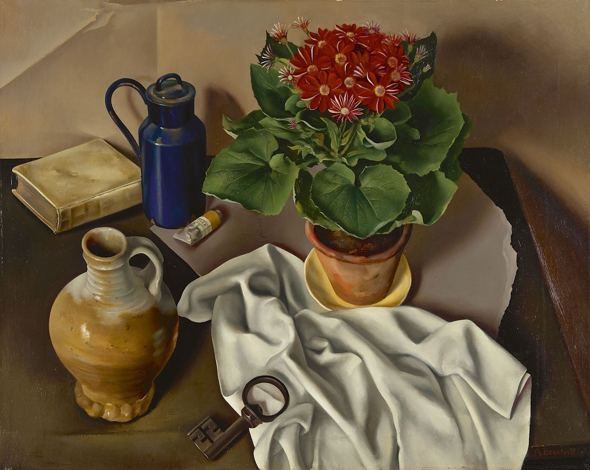 Dolf Breetvelt kunstwerk • schilderij • voorheen te koop Stilleven met plantje, kruik en sleutel