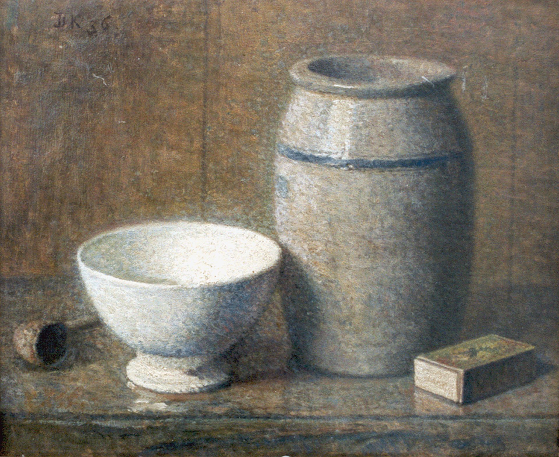 Douwe Komter kunstwerk • schilderij • voorheen te koop Stilleven met Keulse pot en kom