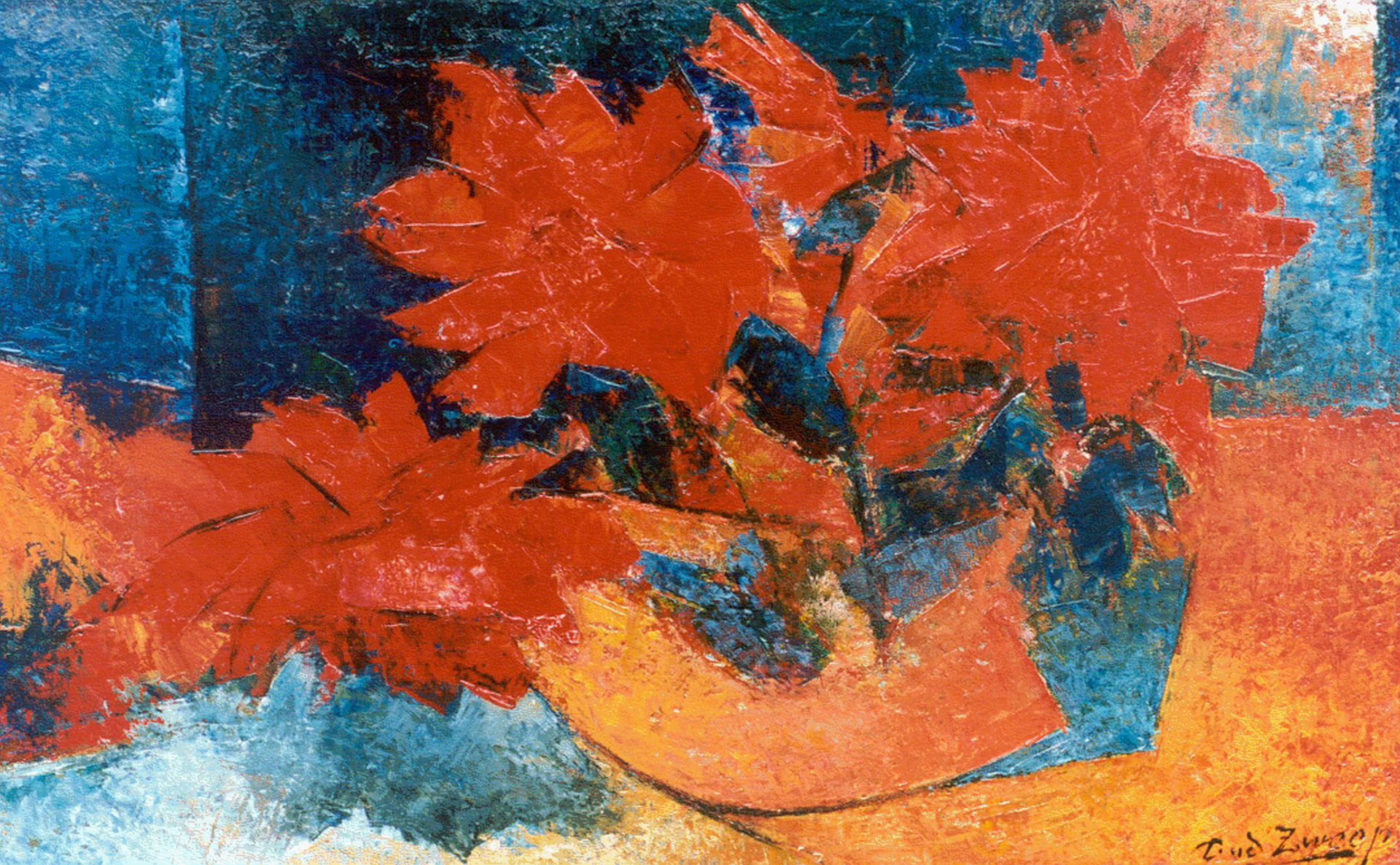 Douwe van der Zweep kunstwerk • schilderij • voorheen te koop Rode bloemen in een kom