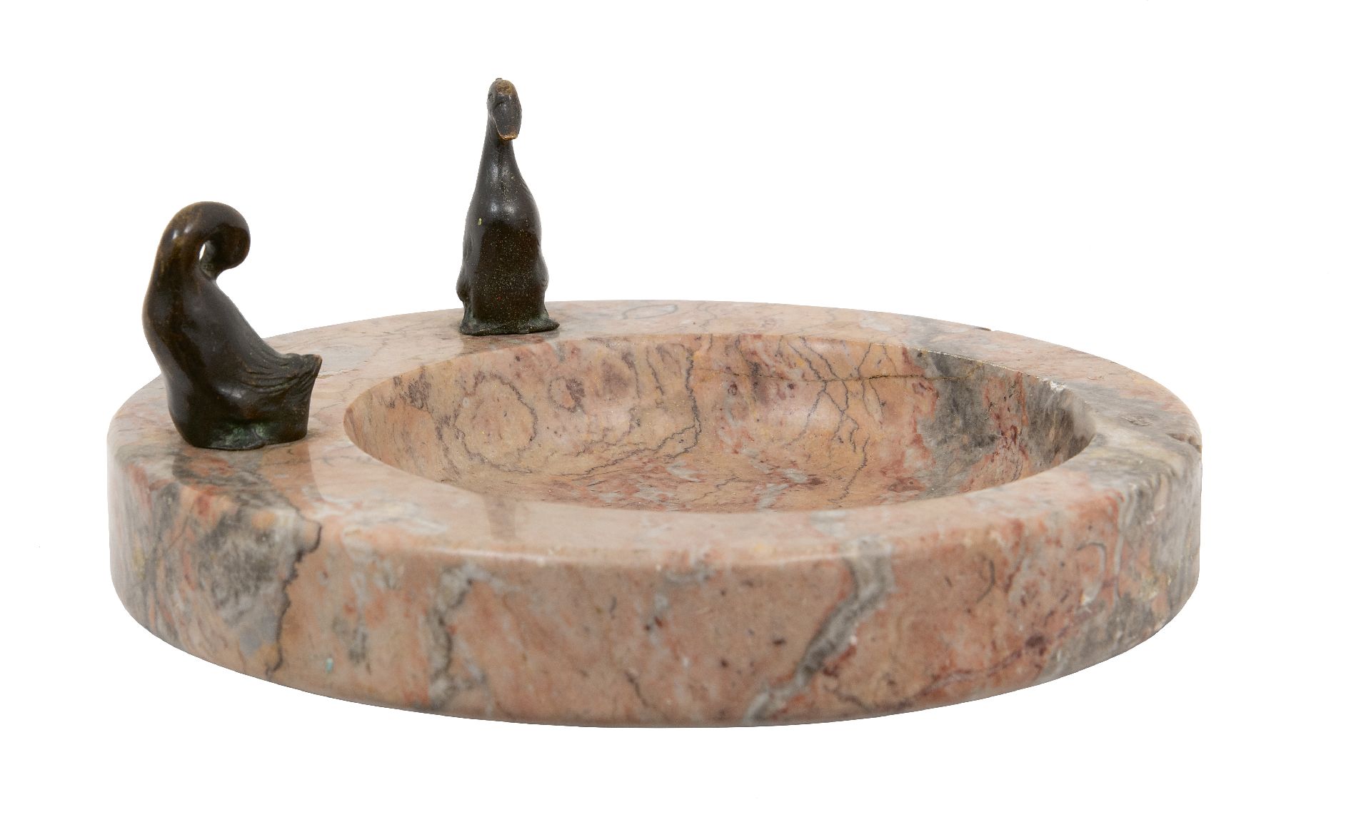 Duitse School, begin 20e eeuw kunstwerk • beeld • sculptuur • te koop Schaal met twee eenden