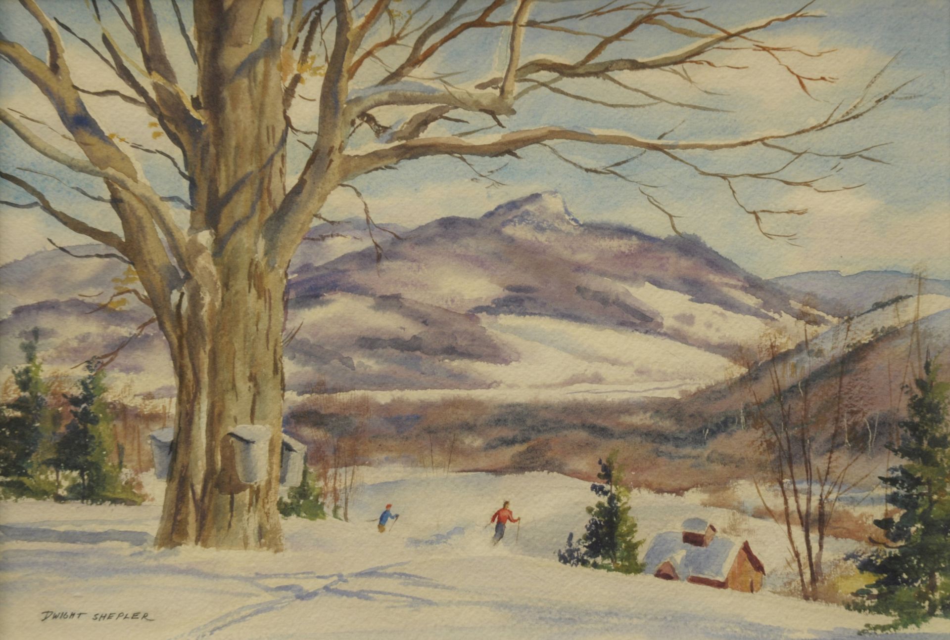 Shepler D.C.  | Dwight Clark Shepler, Skiën in maart, Vermont, aquarel op papier 27,5 x 39,0 cm, gesigneerd linksonder