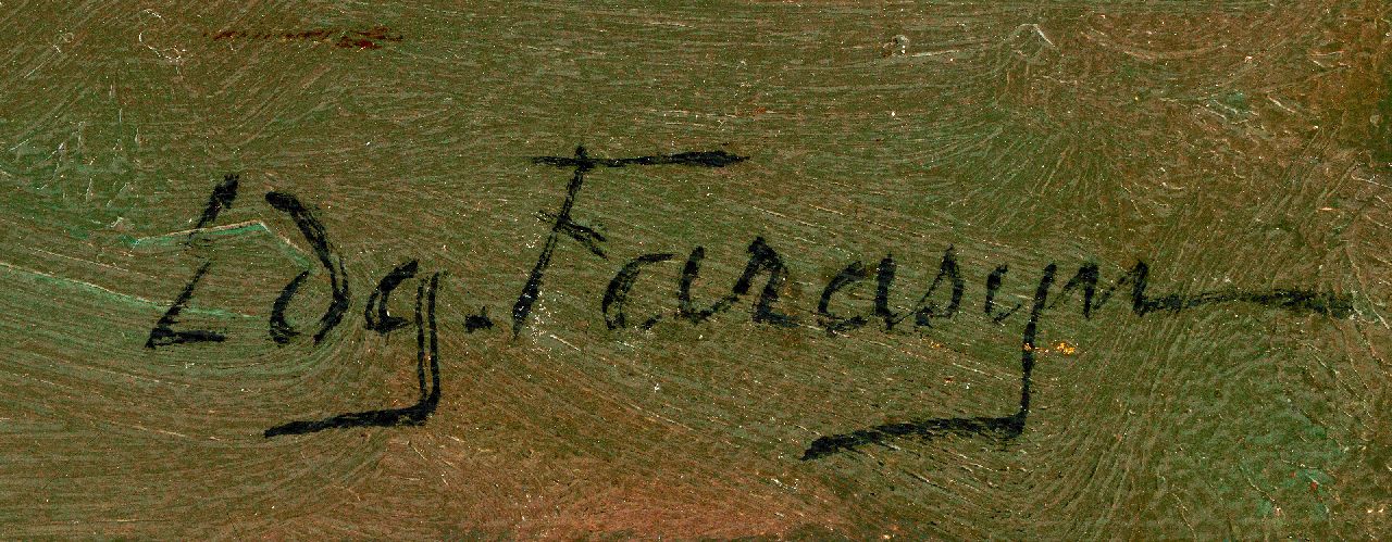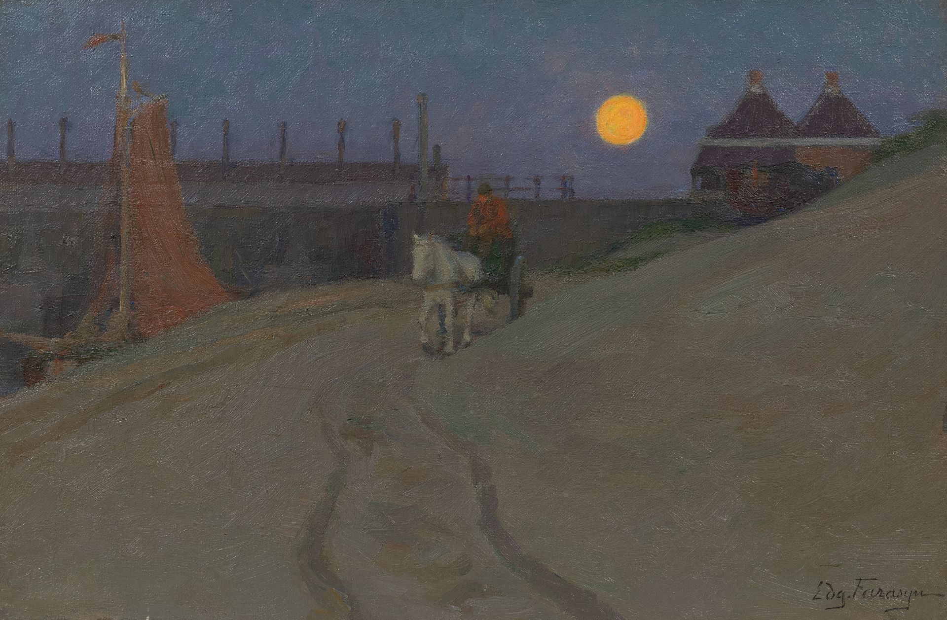 Edgard Farasijn was een Belgisch schilder van figuren, dieren en zeegezichten. Beroemd werd hij vooral met zijn kleurige marktscènes en strandtaferelen met vissers, waarvoor hij inspiratie opdeed aan de kust van Vlaanderen en Holland. Tussen 1898 en 1913 verbleef hij meermalen in Katwijk om er het leven van de vissers te schilderen. Soms vond Farasijn de uitdrukking van een dromerige, enigszins melancholische stemming belangrijker dan een nauwkeurige uitbeelding van zijn onderwerp.