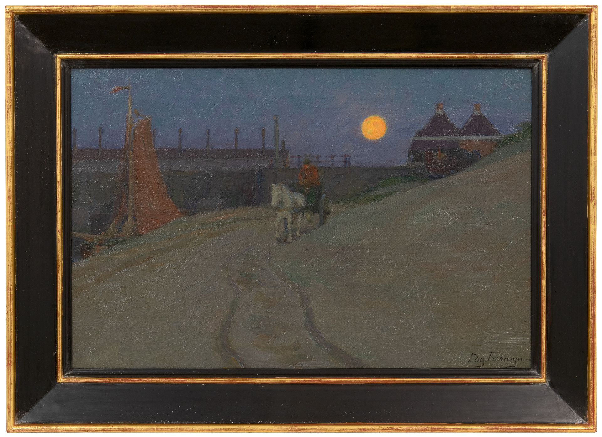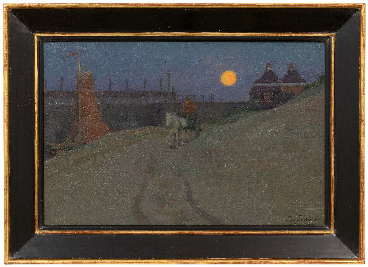 Edgard Farasijn kunstwerk • schilderij • te koop De Watering bij Katwijk bij maanlicht