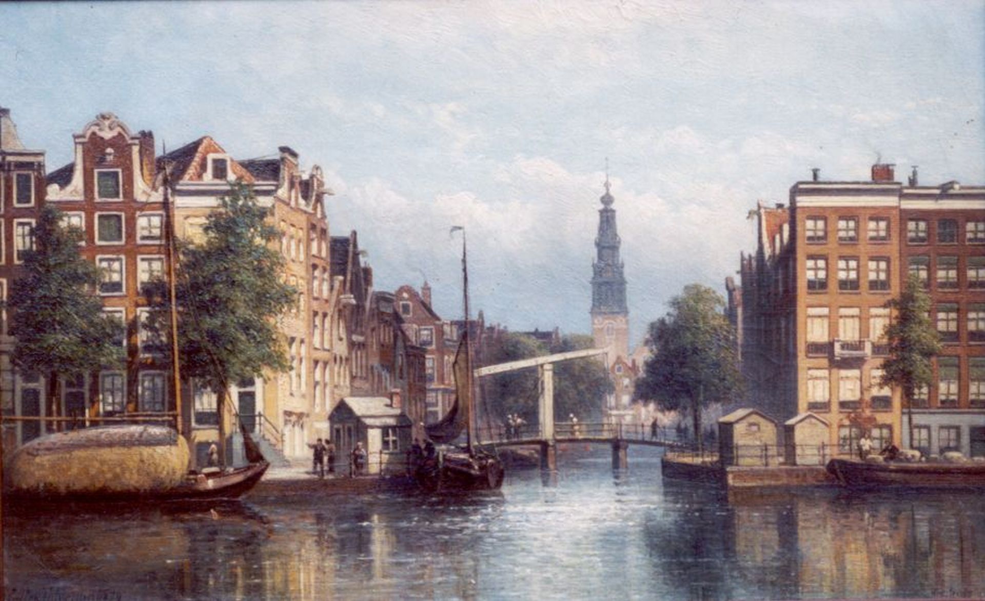 Eduard Alexander Hilverdink kunstwerk • schilderij • voorheen te koop Gezicht op de Groenburgwal, Amsterdam, gezien vanaf de Amstel