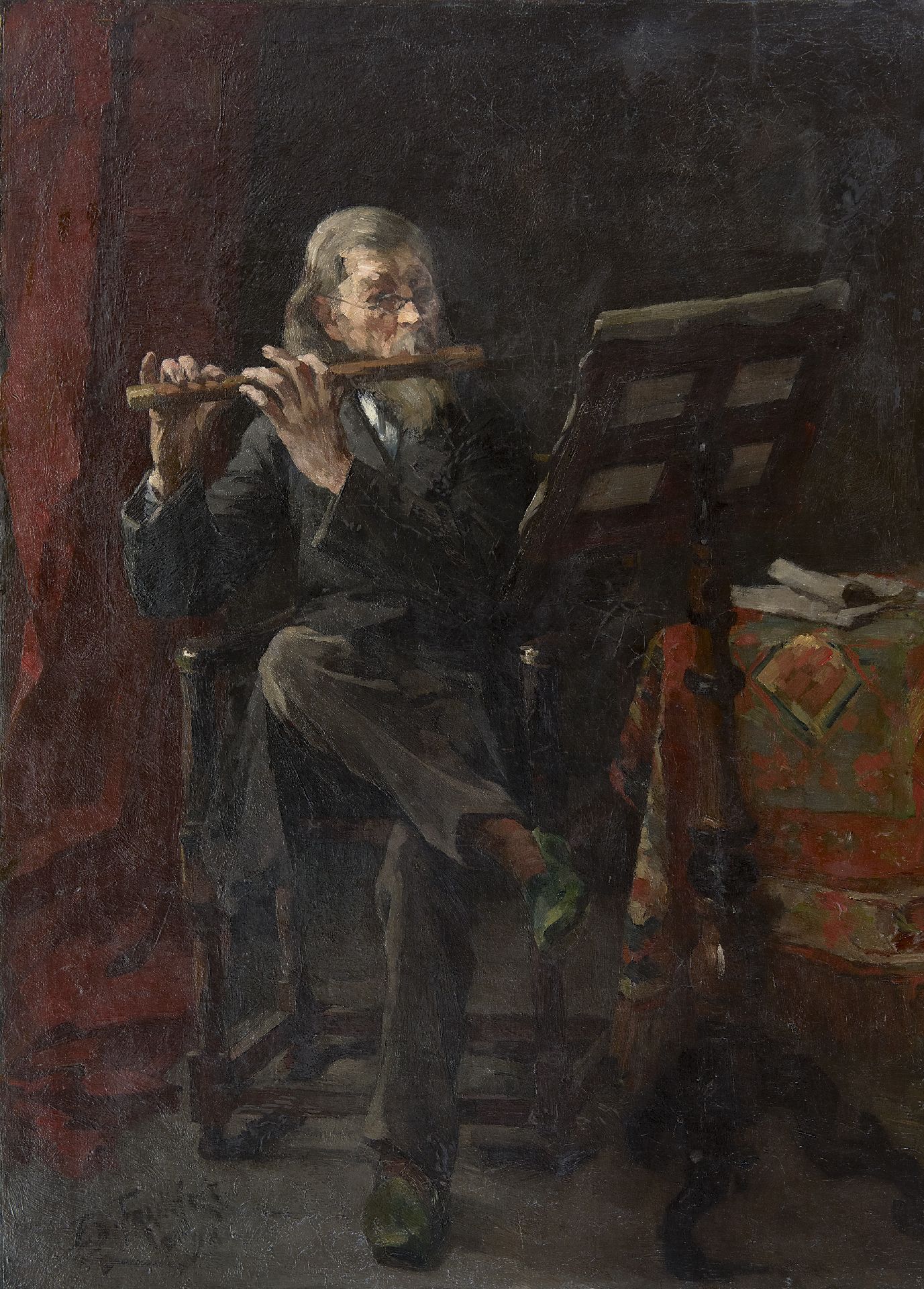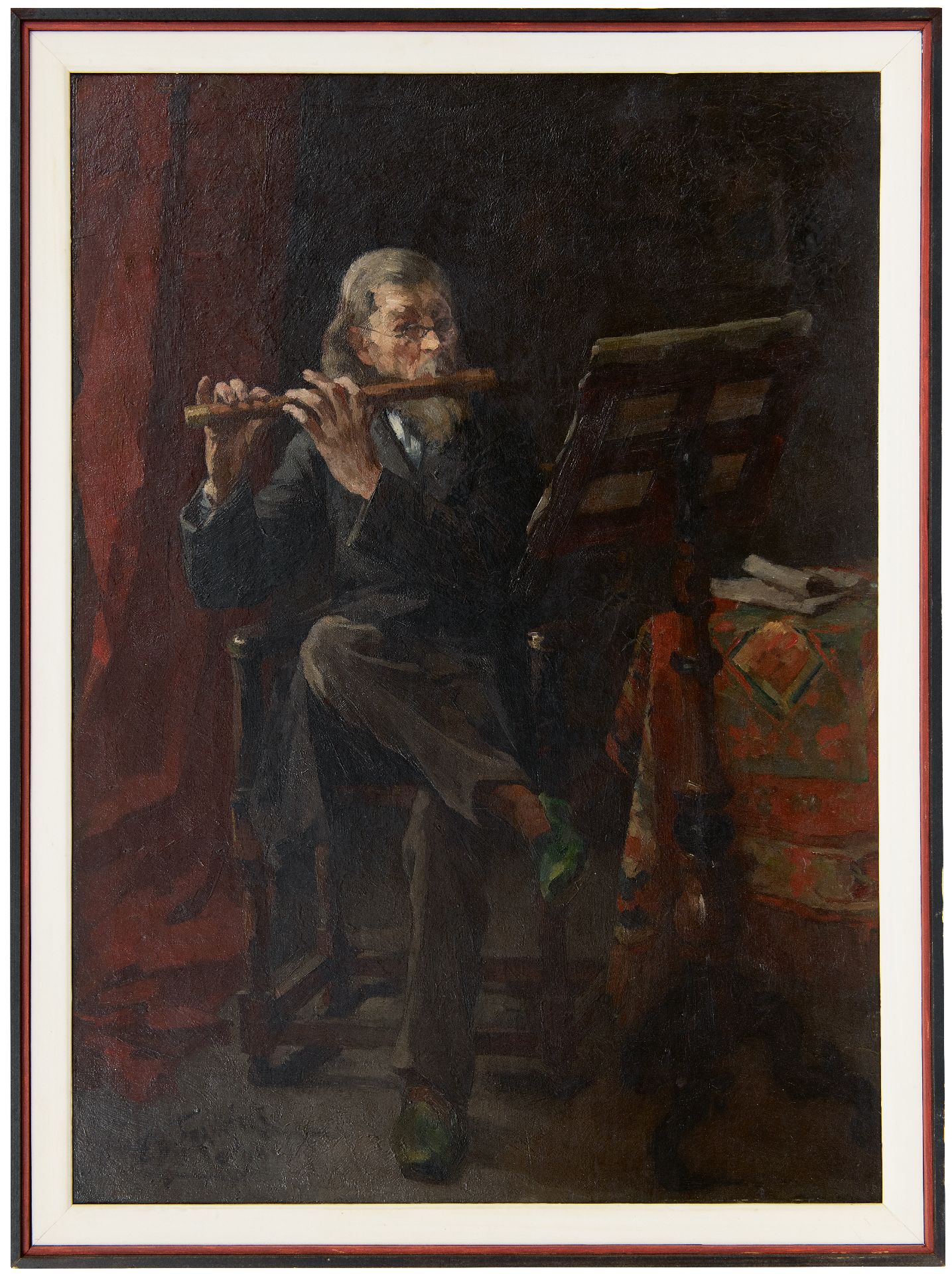 Eduard Frankfort kunstwerk • schilderij • te koop De fluitspeler