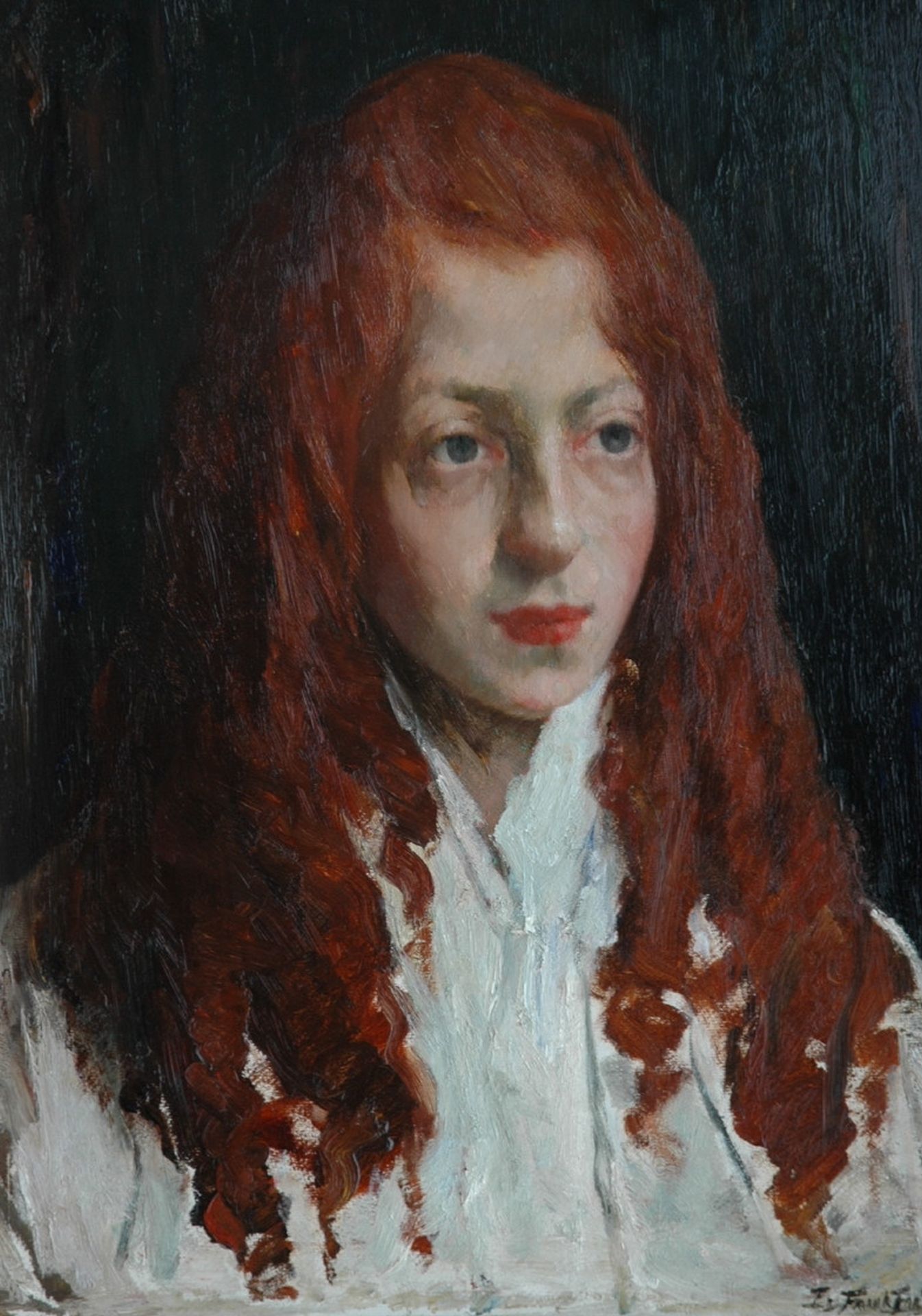 Eduard Frankfort kunstwerk • schilderij • voorheen te koop Joods meisje met rood haar