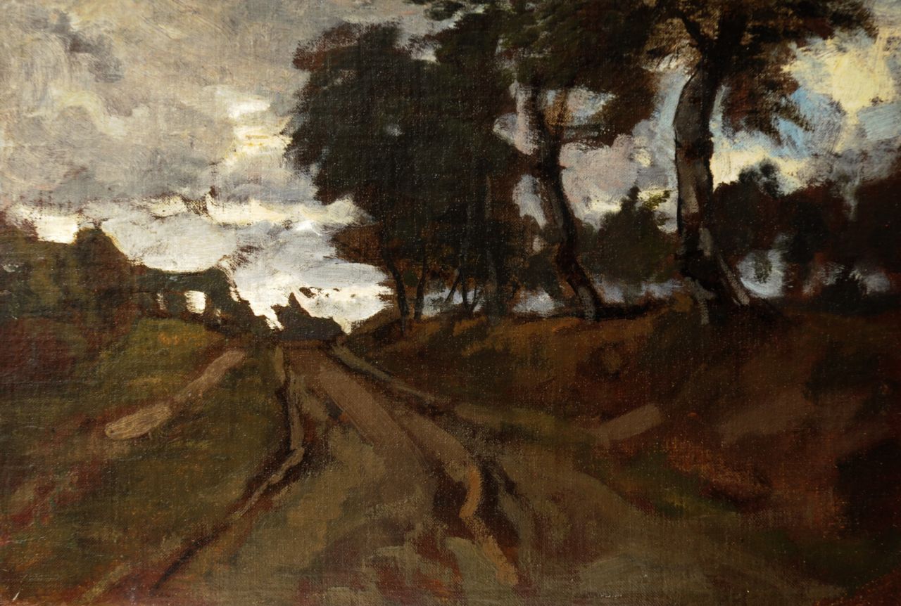 Eduard Frankfort kunstwerk • schilderij • voorheen te koop Zandweg tussen bomen