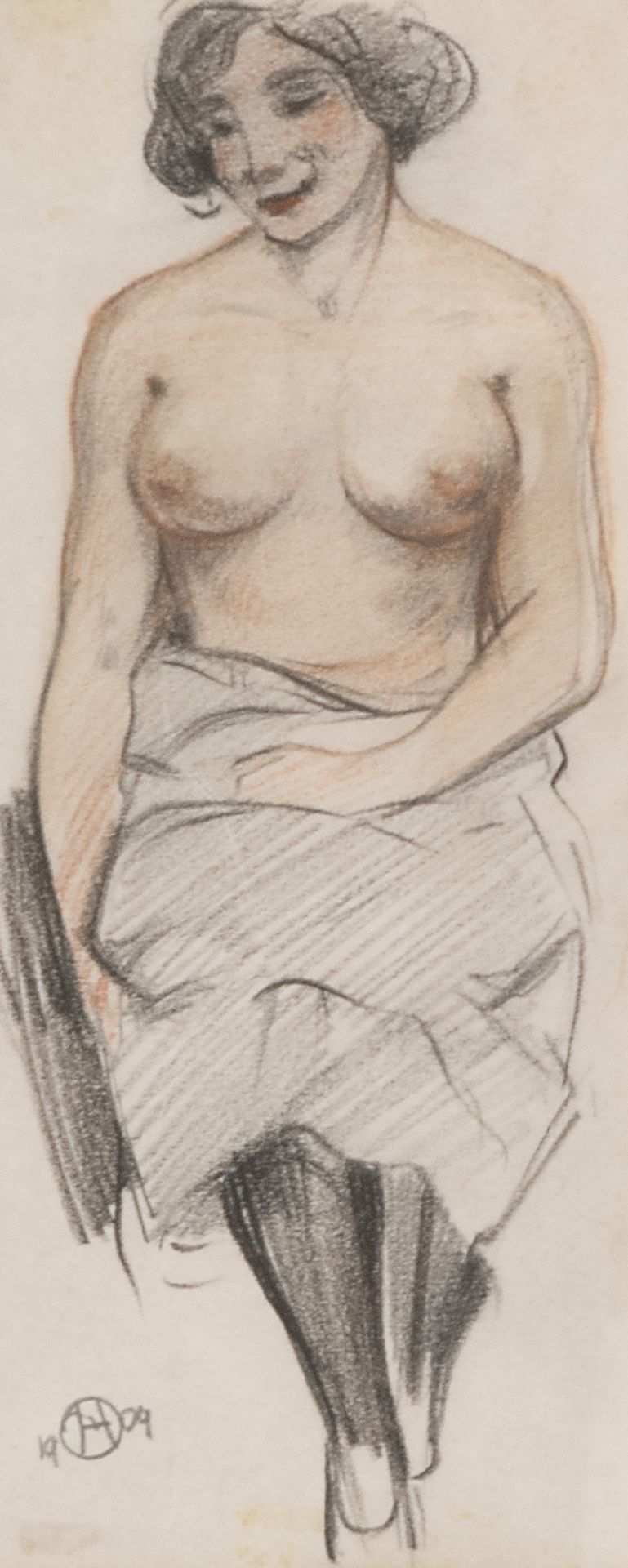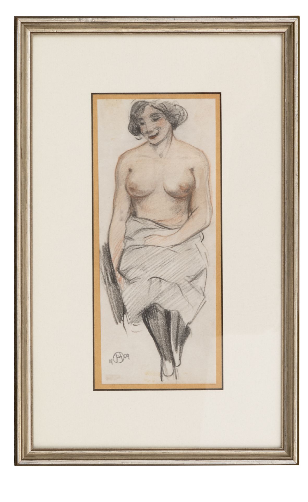 Eduard Houbolt kunstwerk • aquarel • tekening • te koop Zittend naakt