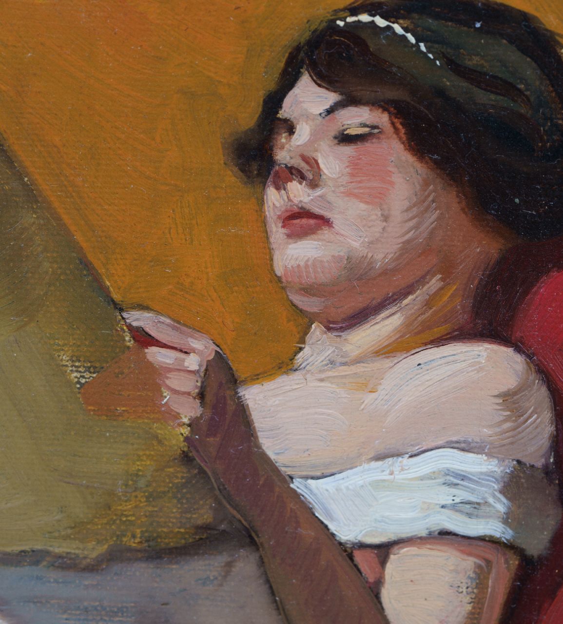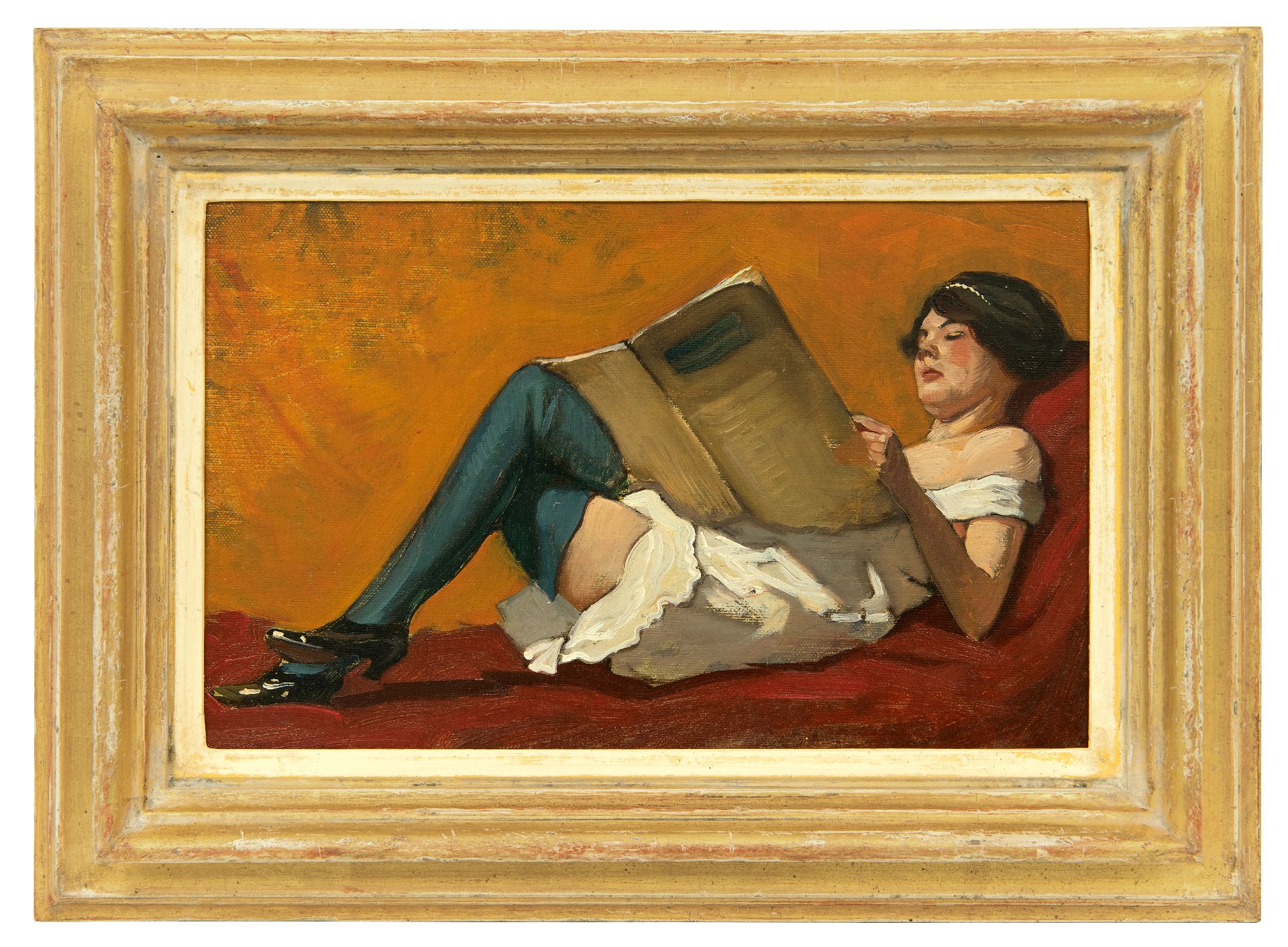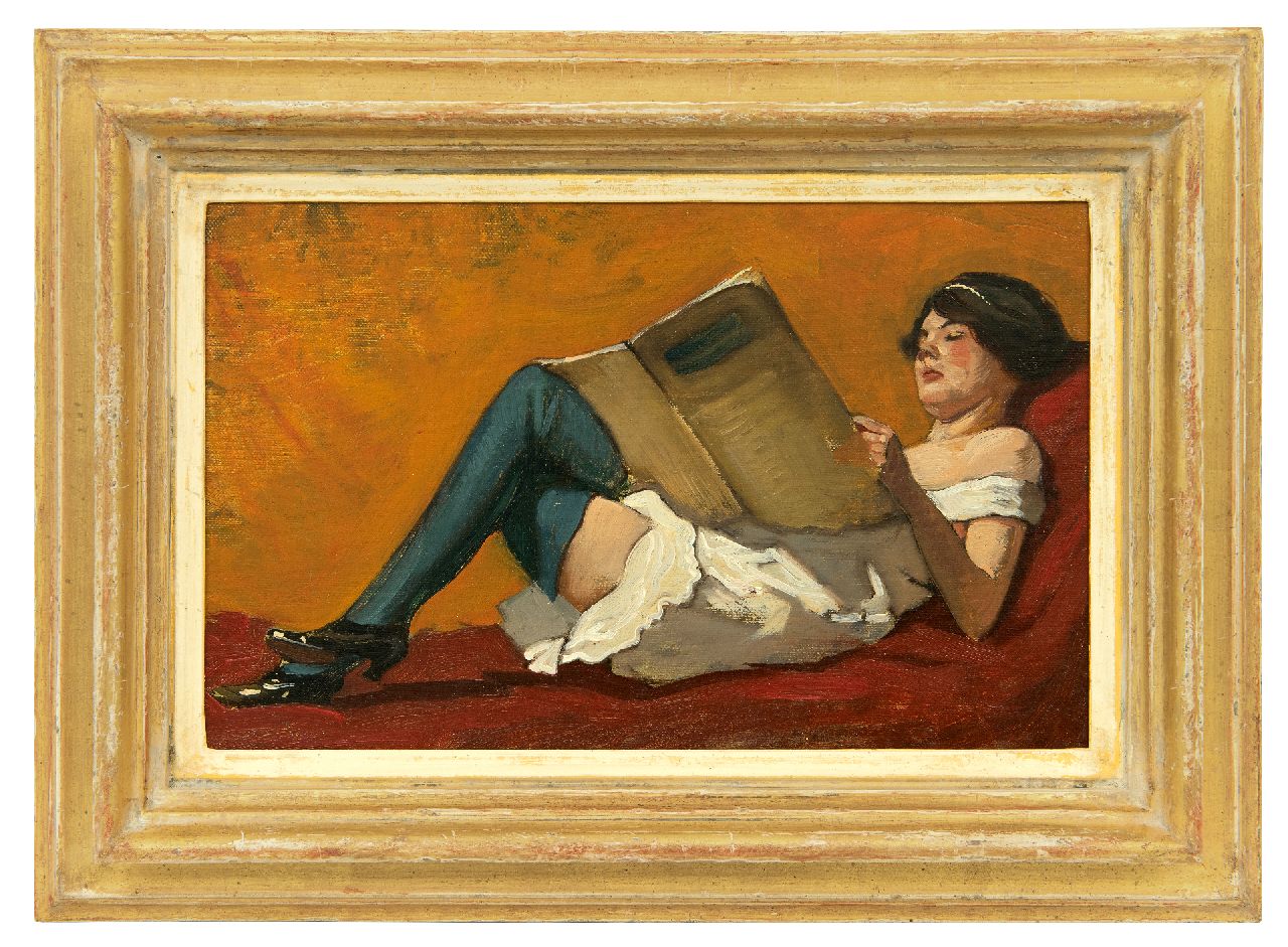 Eduard Houbolt kunstwerk • schilderij • voorheen te koop Lezend meisje op een divan