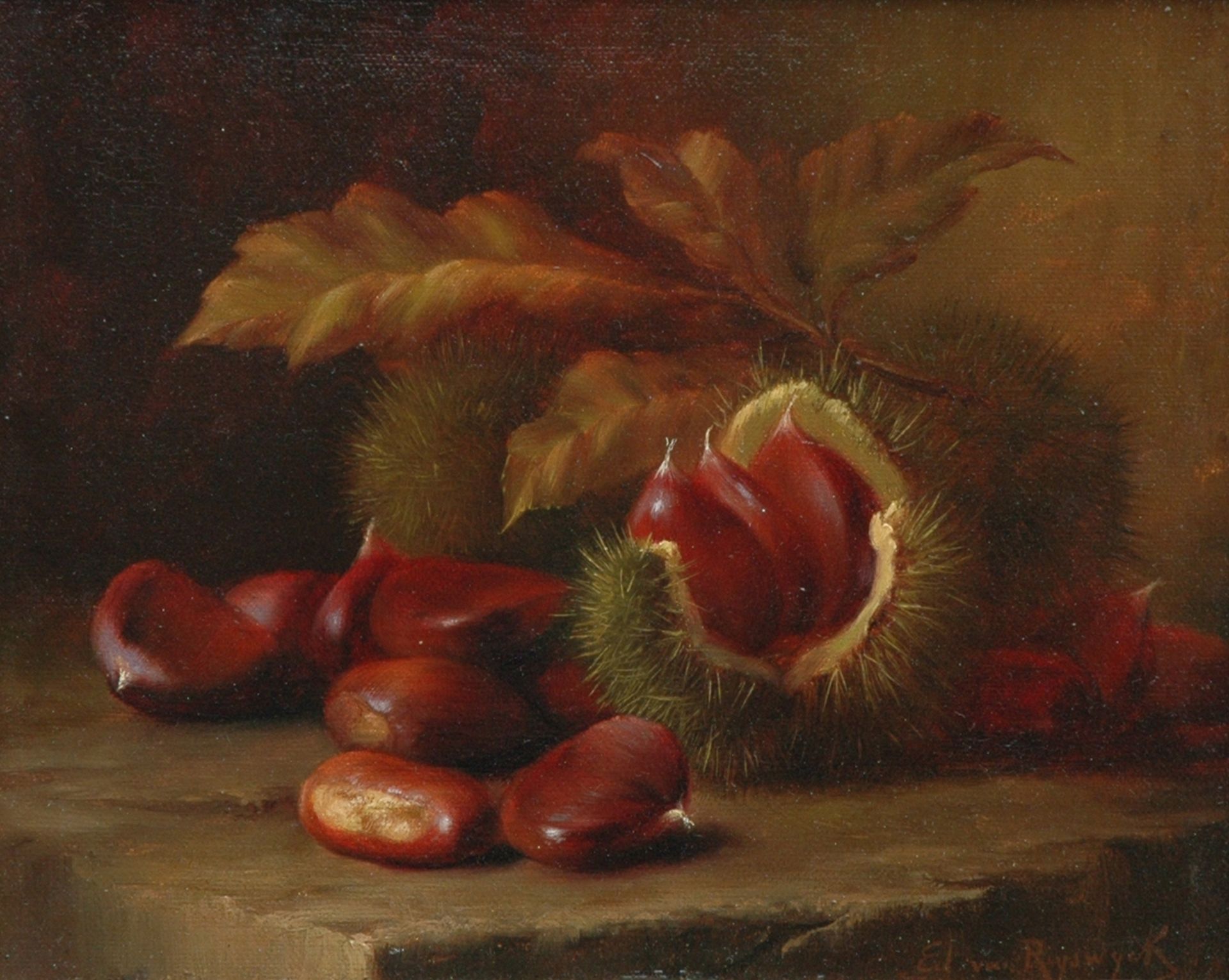Edward van Ryswyck kunstwerk • schilderij • voorheen te koop Stilleven met tamme kastanjes