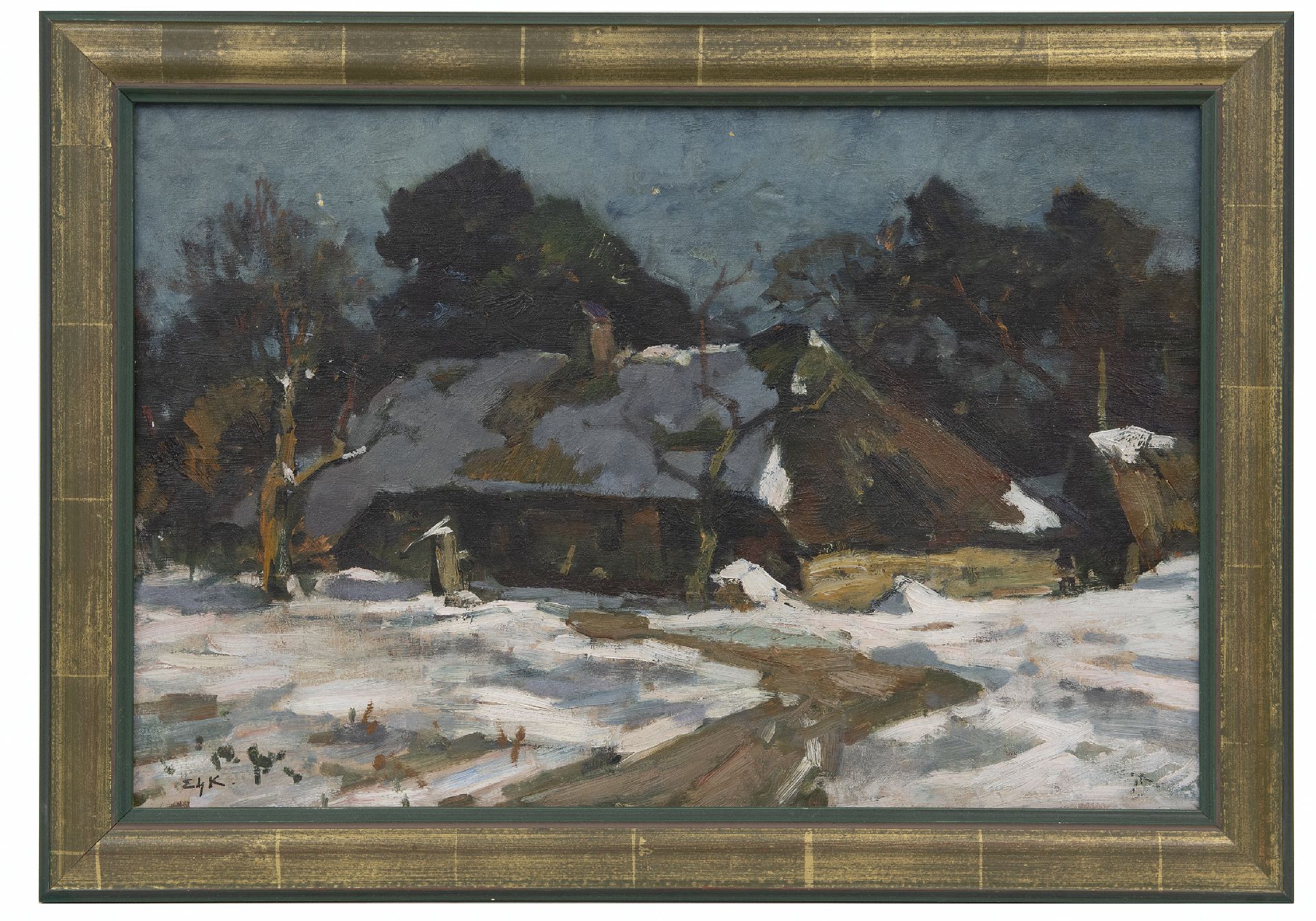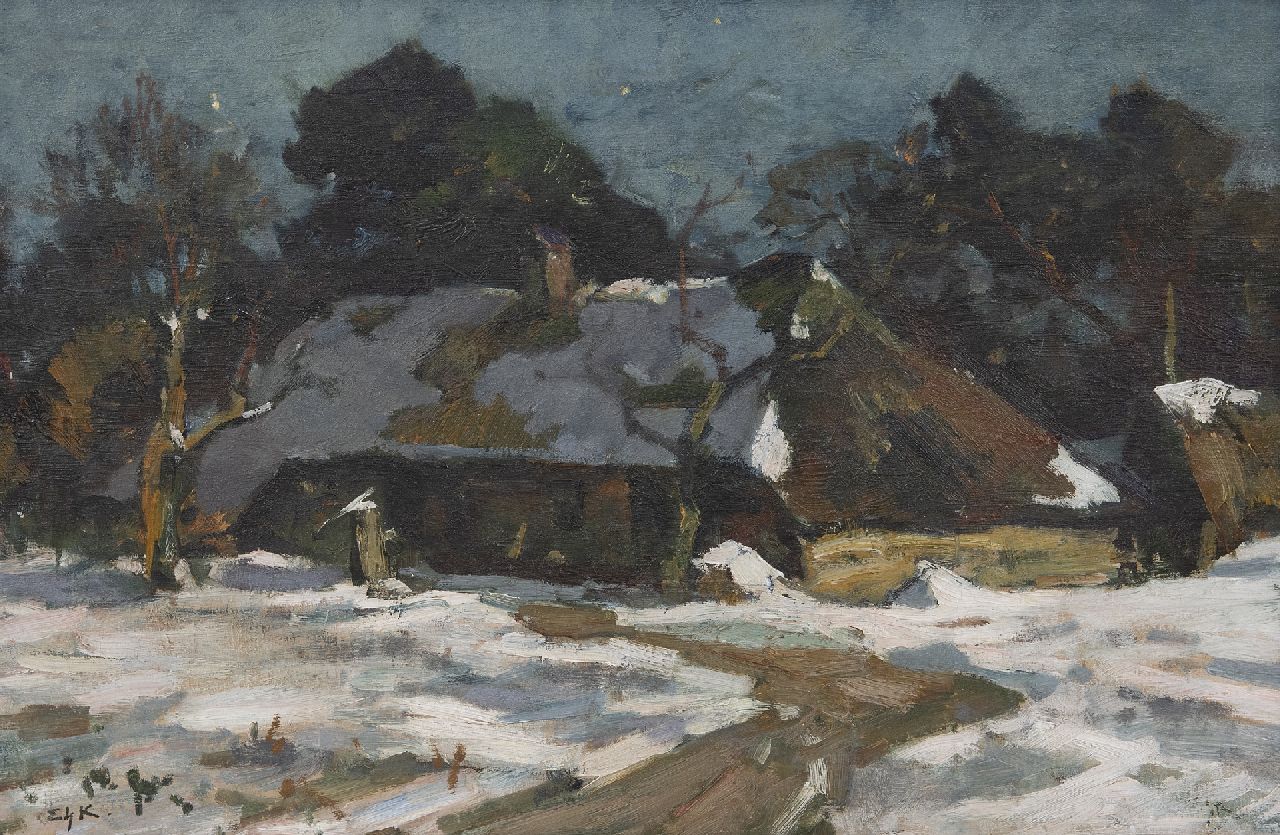 Edzard Koning kunstwerk • schilderij • voorheen te koop Veluwse boerderij in de sneeuw